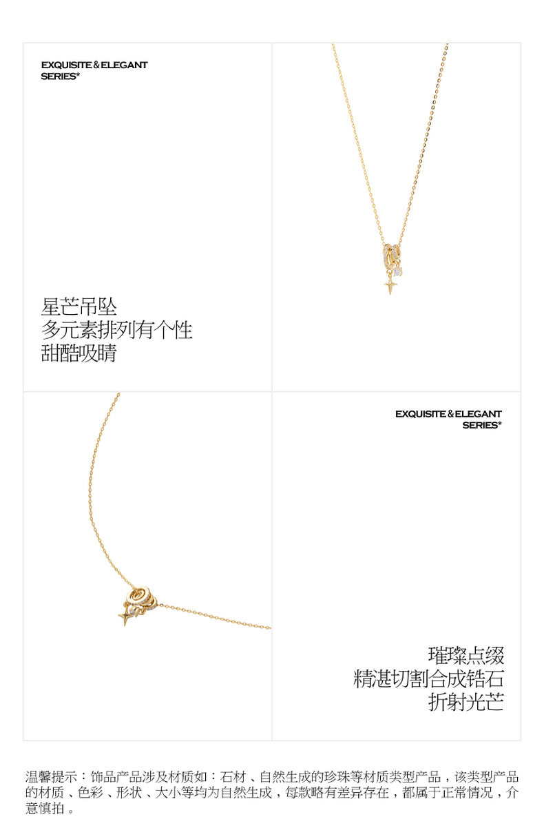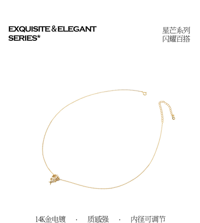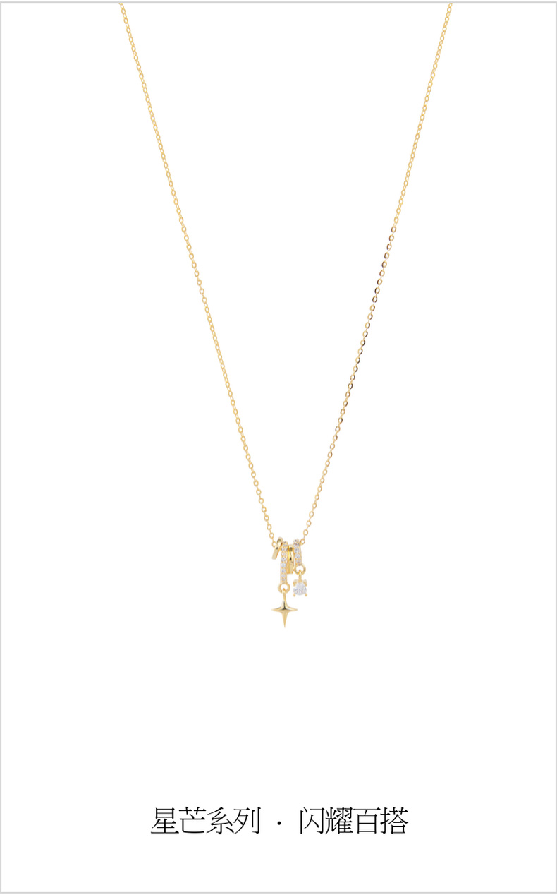 三彩2026新款极简锆饰星芒吊坠项链轻奢个性通勤约会设计感高级女