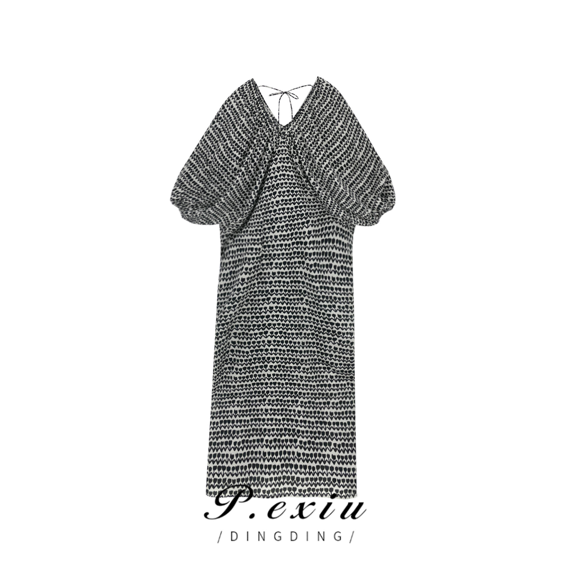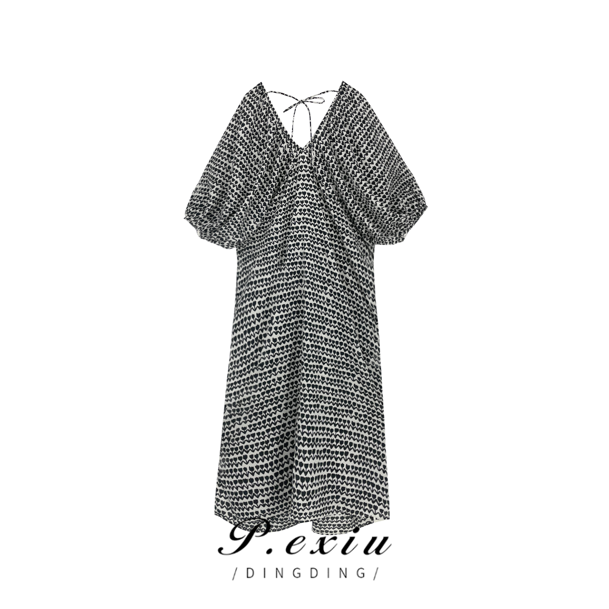 03-3潘依绣丁丁宠粉 【芬芳郁金香】小众设计感V领露背慵懒风连衣裙 20895T