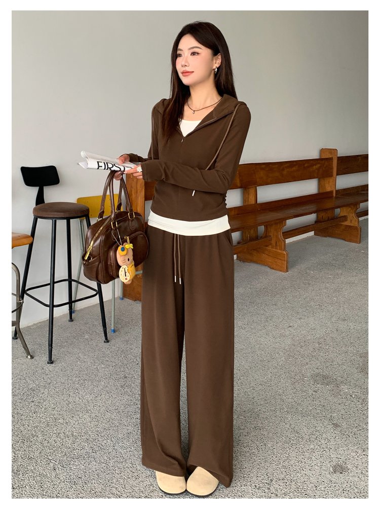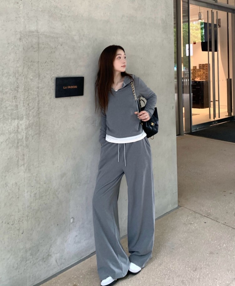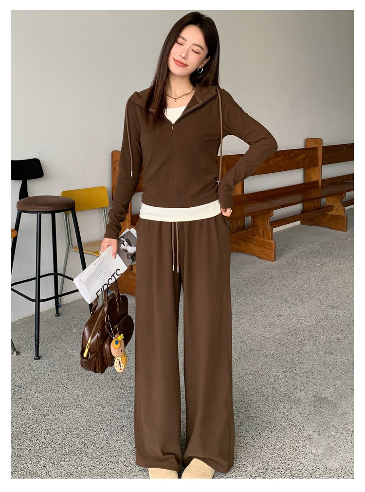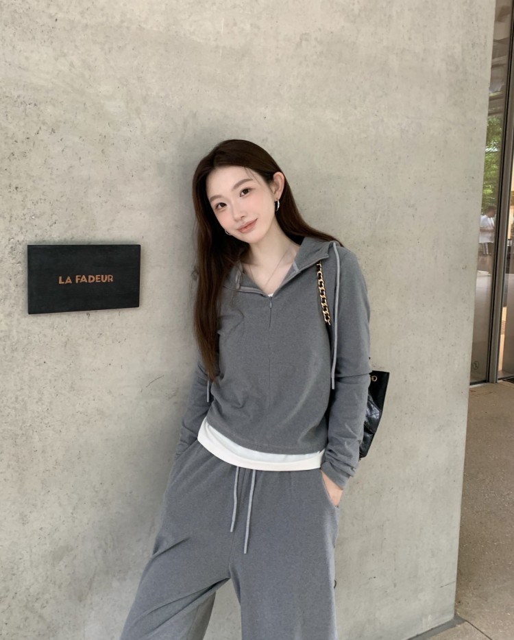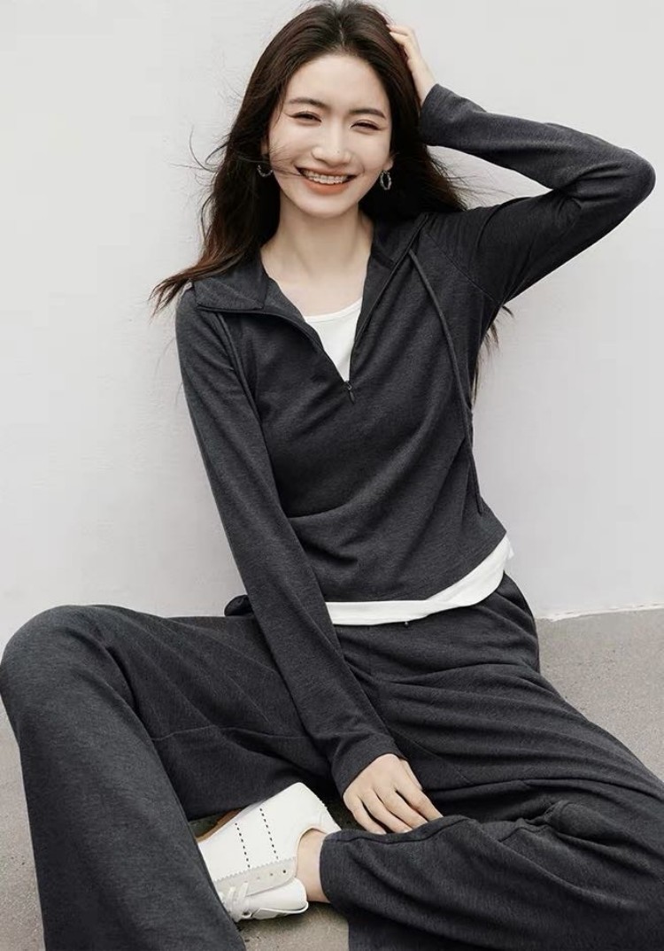 【Beau Muse】时尚潮流休闲百搭仿羊绒假两件连帽套装LJT
