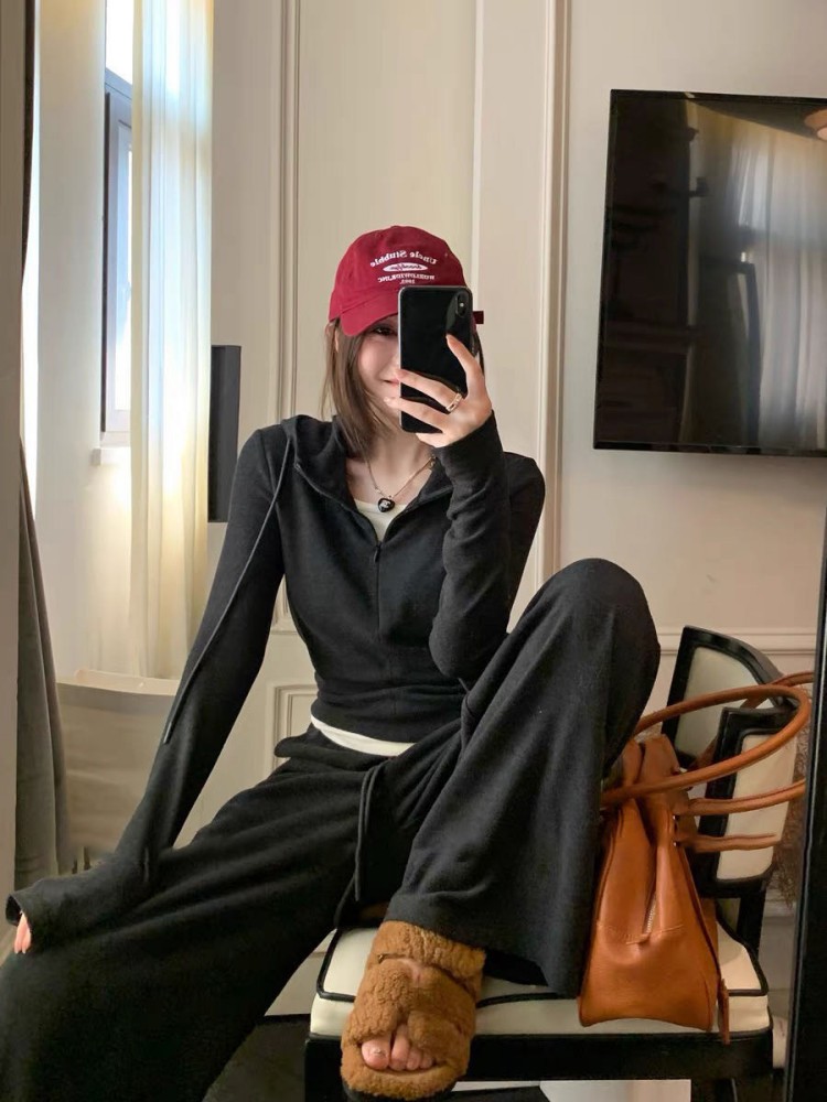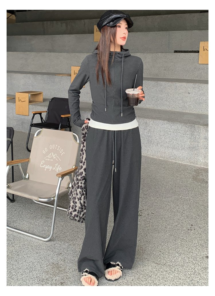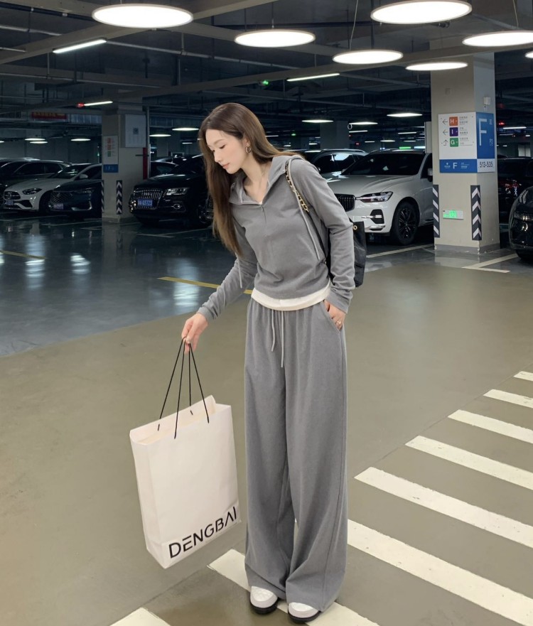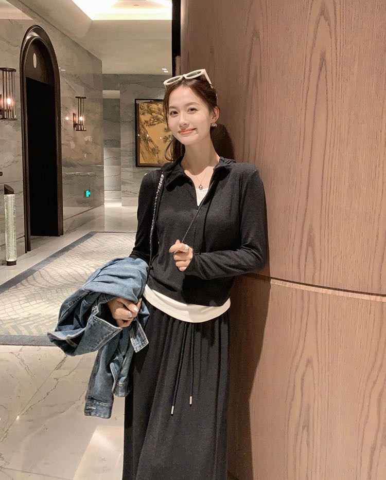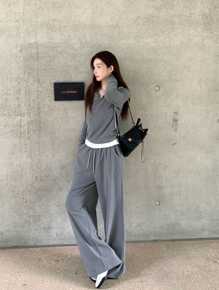【Beau Muse】时尚潮流休闲百搭仿羊绒假两件连帽套装LJT