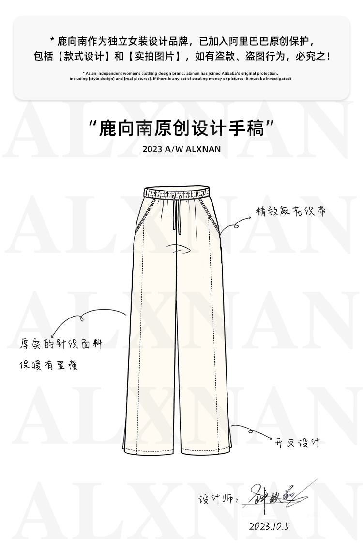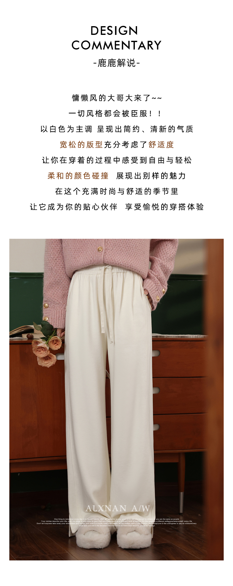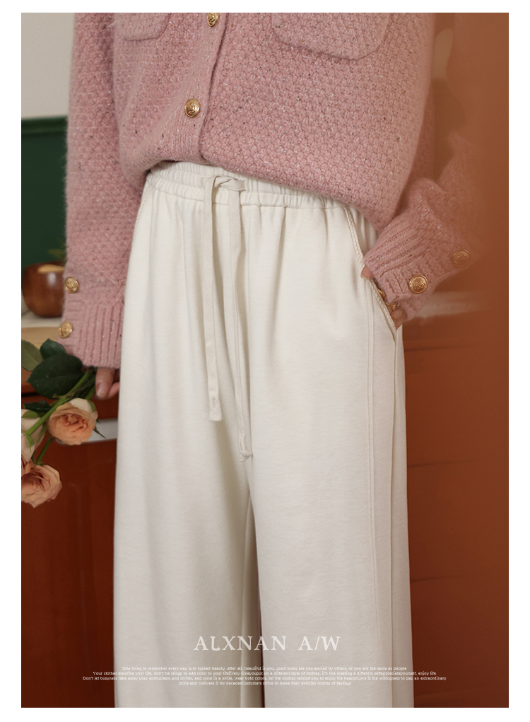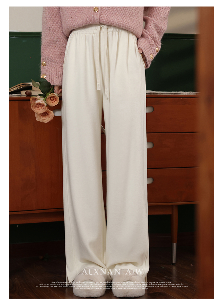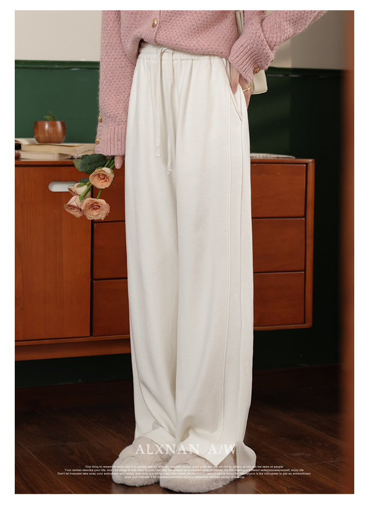 鹿向南《休闲软妹》白色宽松阔腿休闲裤女2024年秋冬新款加绒裤子LXN32716