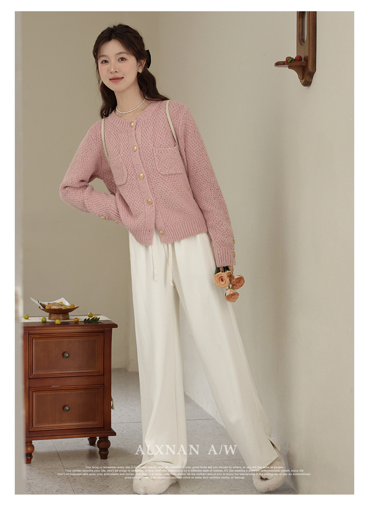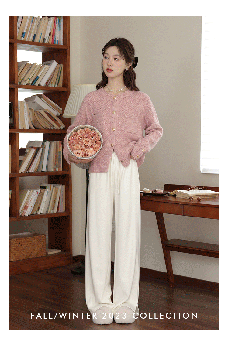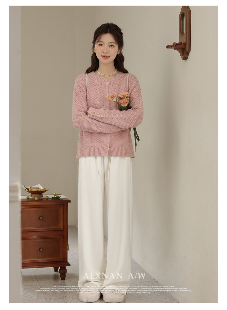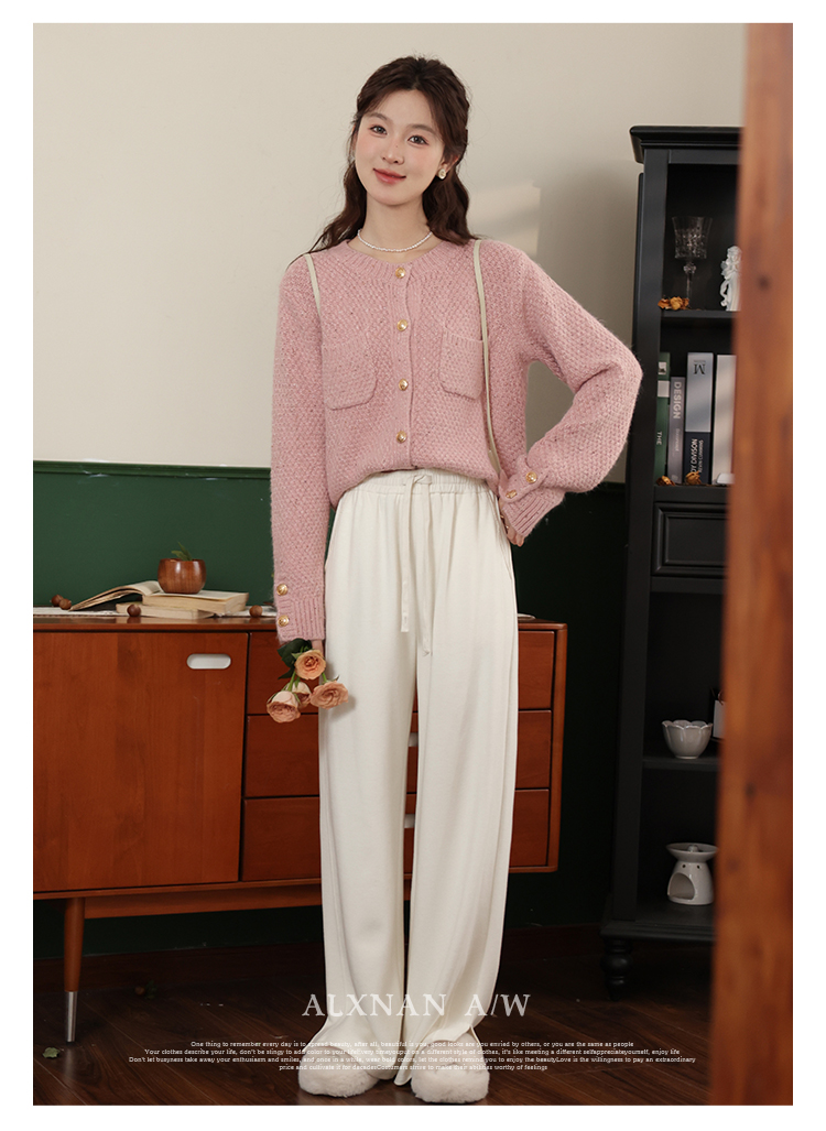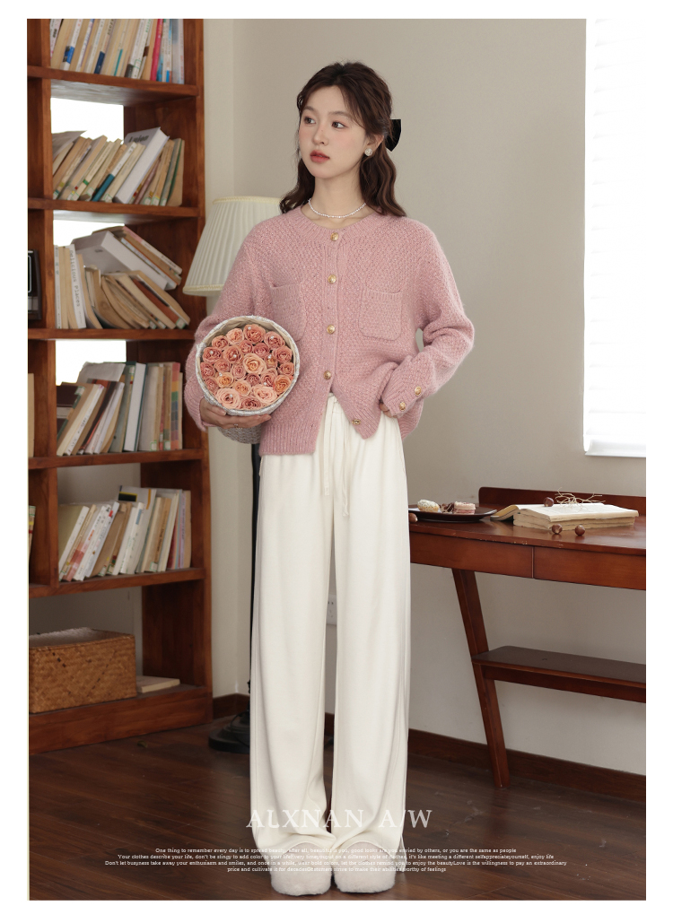 鹿向南《休闲软妹》白色宽松阔腿休闲裤女2024年秋冬新款加绒裤子LXN32716