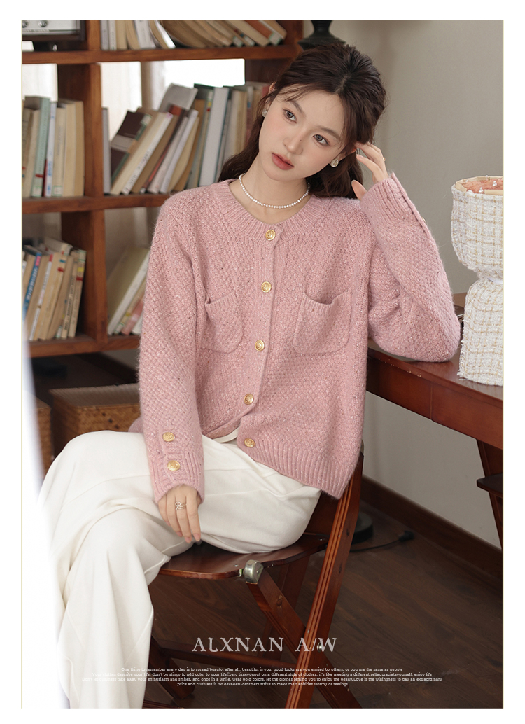 鹿向南「暖序微章」假两件咖色毛衣女秋冬韩系氛围感软糯开衫上衣