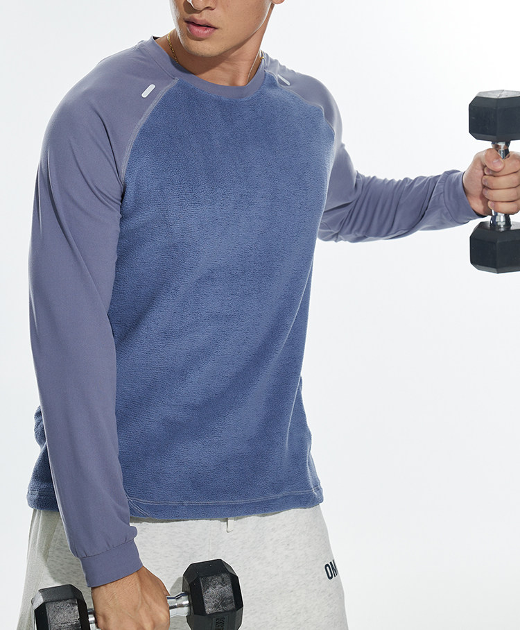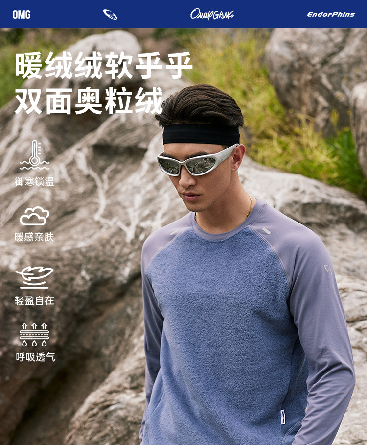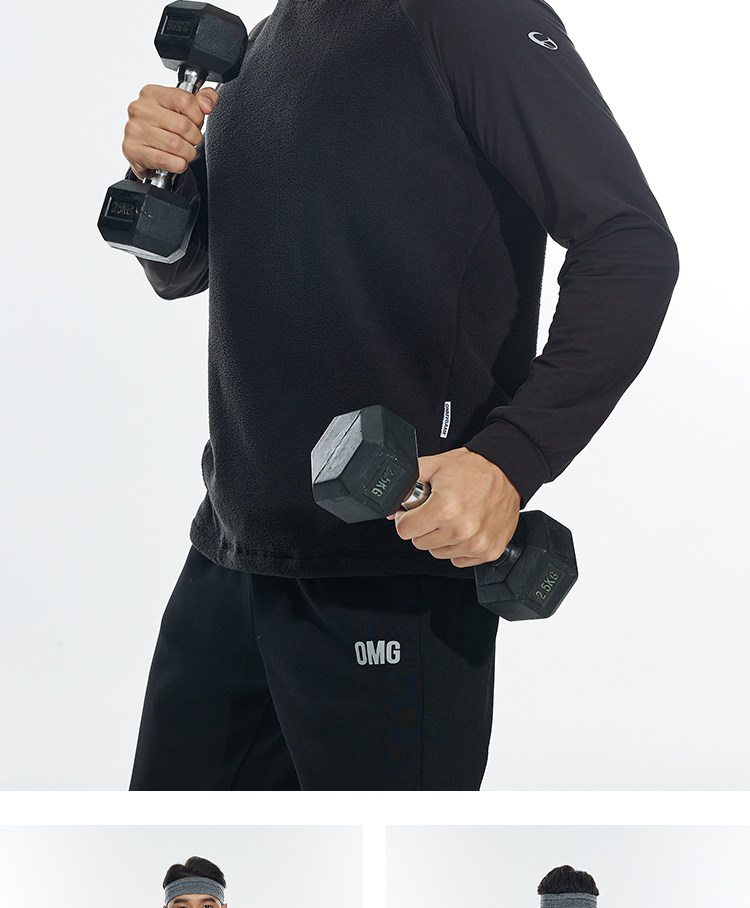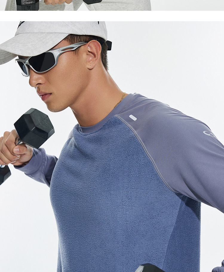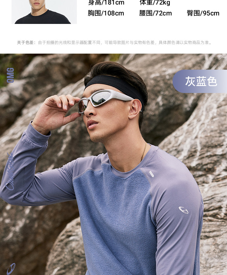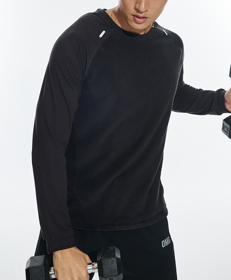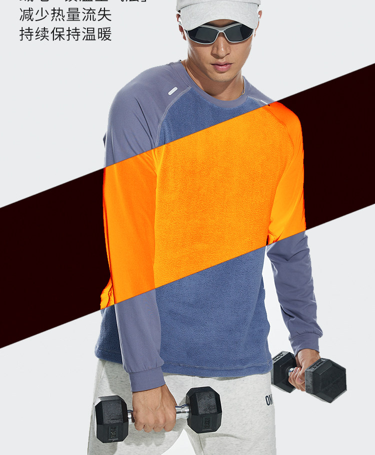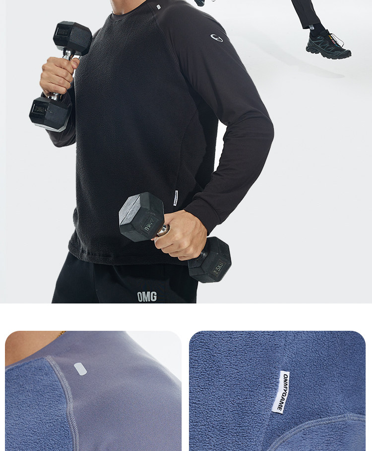 OMG运动 【弹力袖绒衫】冬季加绒加厚上衣保暖长袖t恤打底衫男