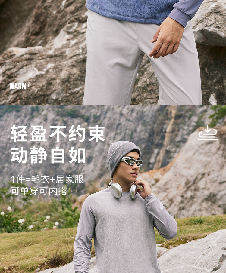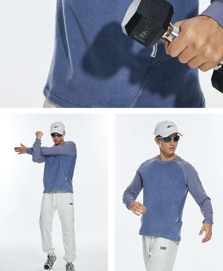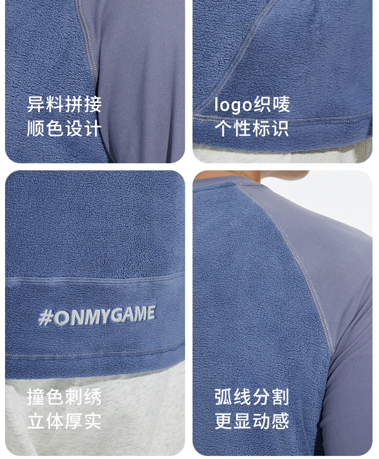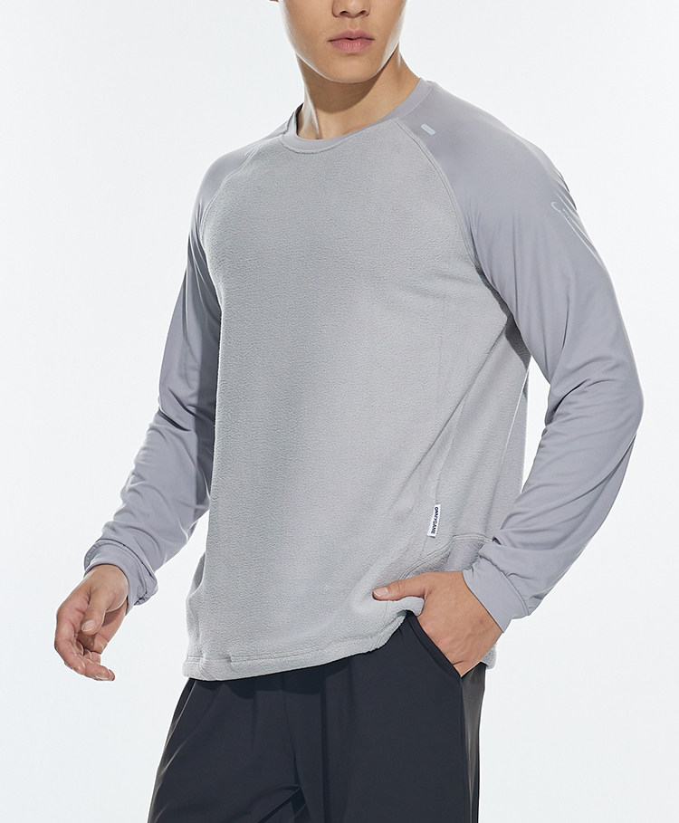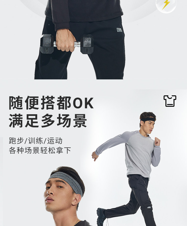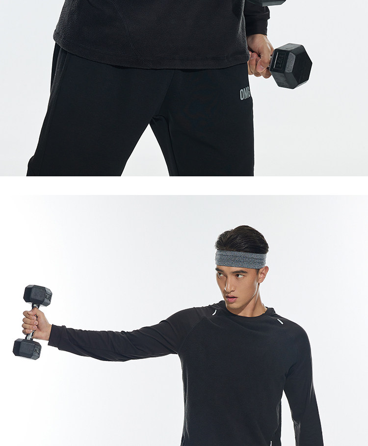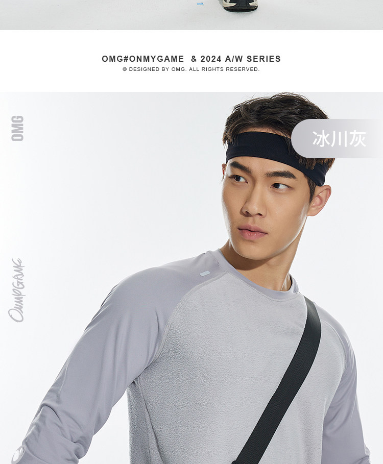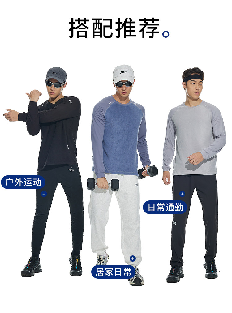 OMG运动 【弹力袖绒衫】冬季加绒加厚上衣保暖长袖t恤打底衫男