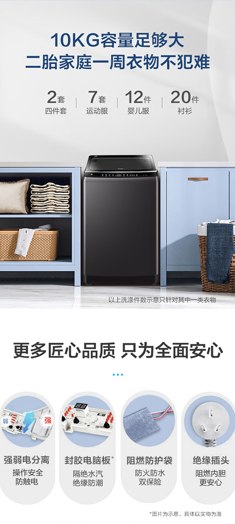 海尔(Haier)波轮洗衣机全自动家电 以旧换新 脱水机直驱10公斤大容量 双动力防缠绕ES100B26Mate6