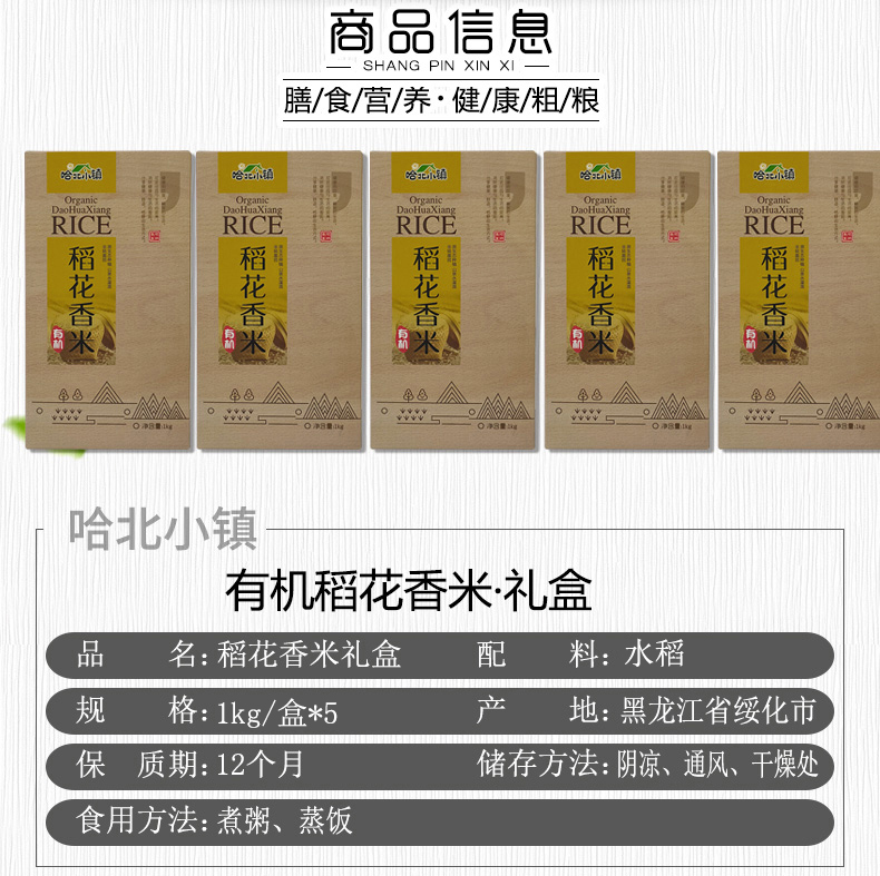 【哈北小镇】有机大米5kg(1kg*5盒)