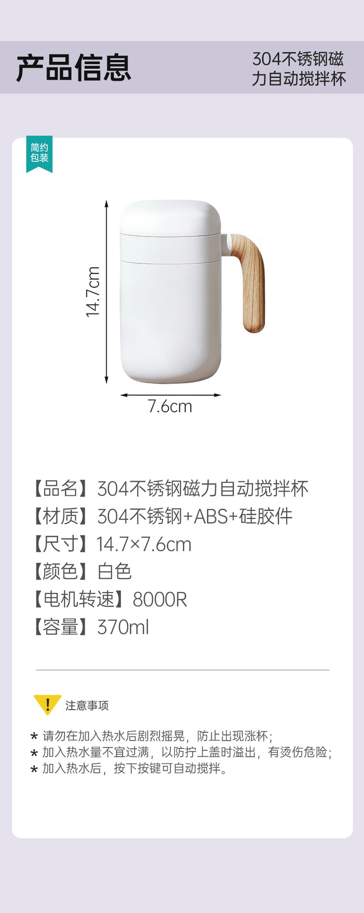 【品名】Maynos磁力自动搅拌杯 【规格】1个 【材质】304不锈钢+ABS+硅胶件 【容量】370ml 【快递】申通、极兔 【偏远加运费区域】新疆、西藏+14元;内蒙古,海南,甘肃,青海+2元;其他包邮 【发货地】温州平阳 【发货时间】下单后48小时发出 【质保期】1年 (签收30日内,产品出现非人为的质量问题,免费换货,运费报销,签收30日以外,产品出现非人为的质量问题,免费换新,或补发配件,运费自理。) 【售后标准】 1、破损,丢件,少件免费补发。客户签收产品后,无产品质量问题,不影响二次销售的情况下,支持7天内退货退款,退货运费自理。(如有质量问题收到后第-时间内反馈)非人为损坏群里反馈进行补发 2、拦截、拒收扣除5元运费,介意慎拍。