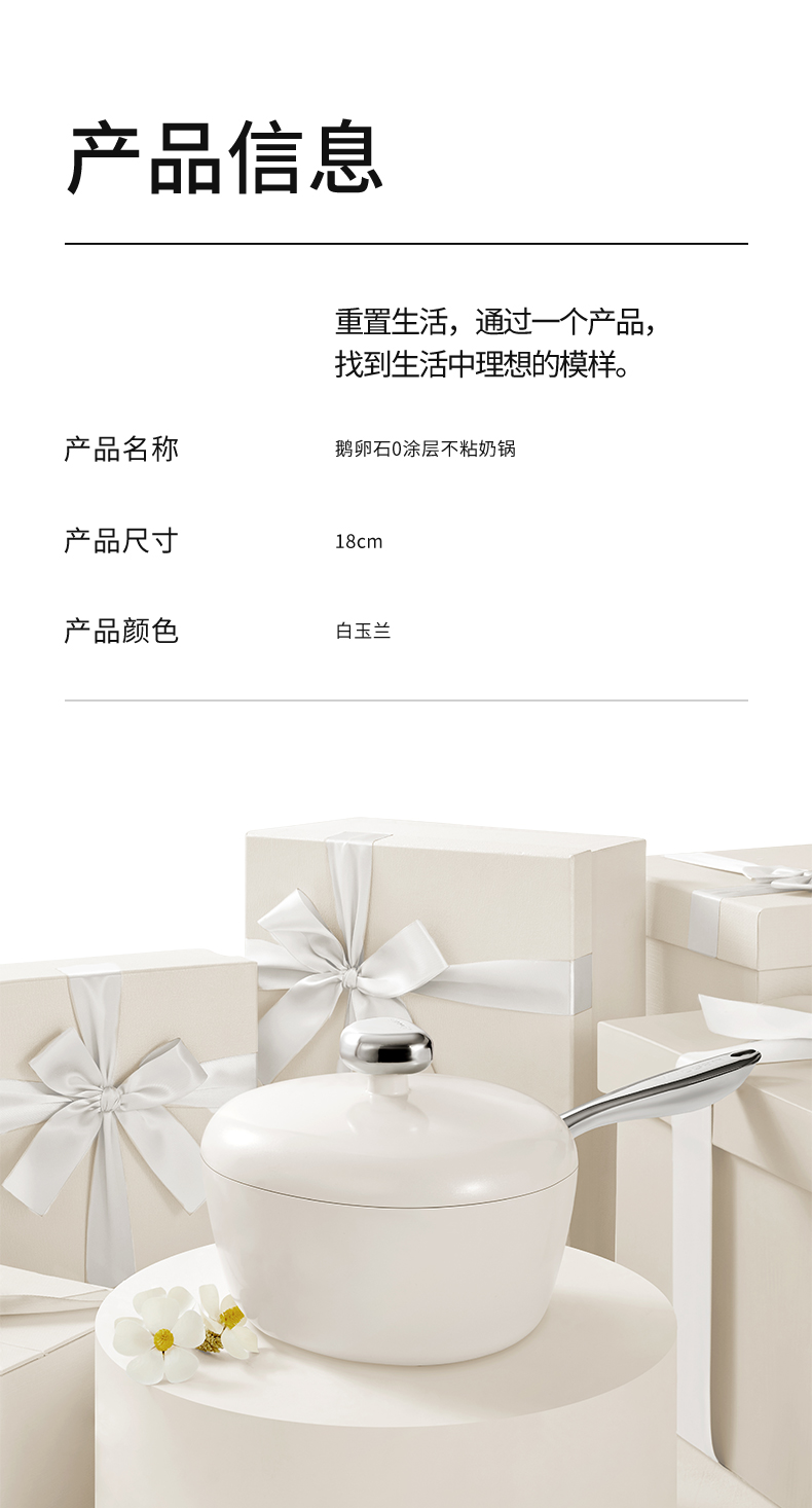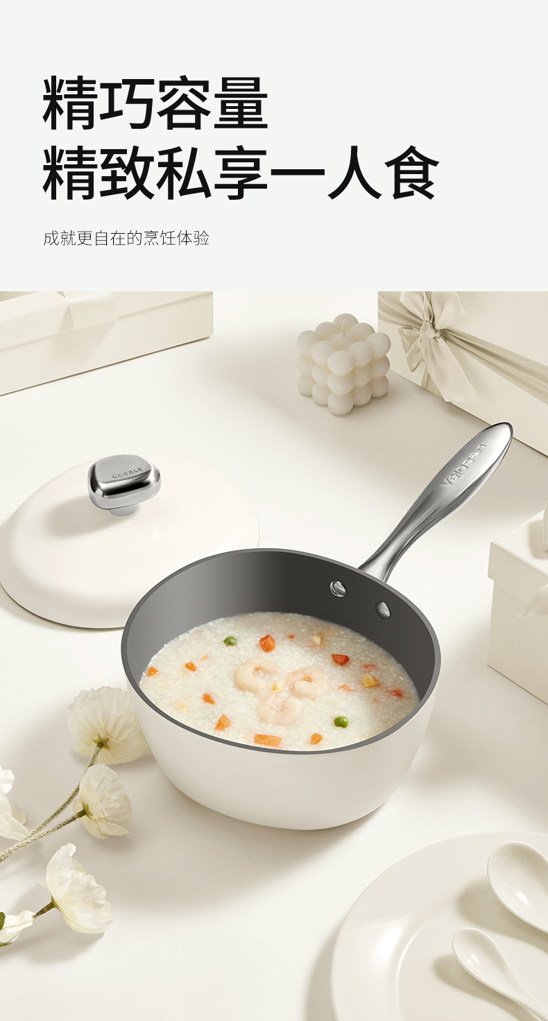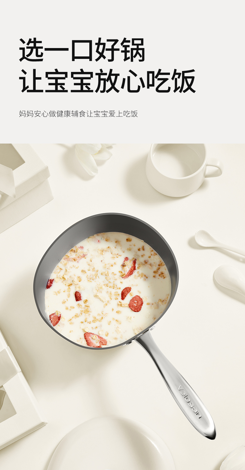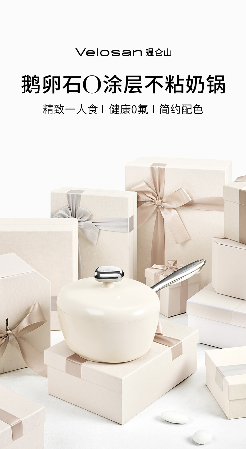 VELOSAN温仑山鹅卵石0涂层不粘奶锅20cmVP-2ENG01-5A18(白)