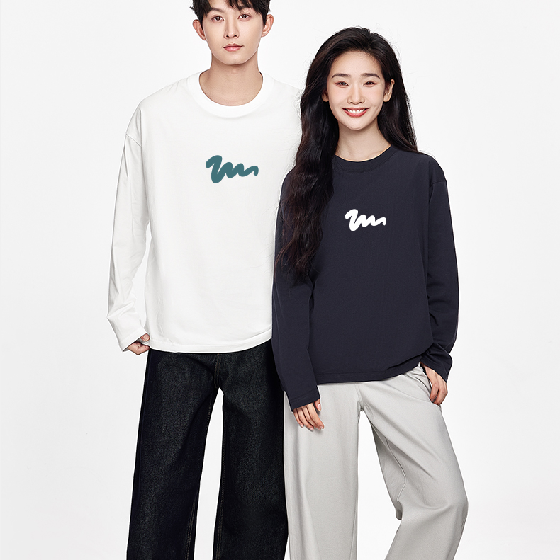 「棉的美学」简约休闲纯棉印花长袖T恤薄款内搭宽松舒适通勤上衣