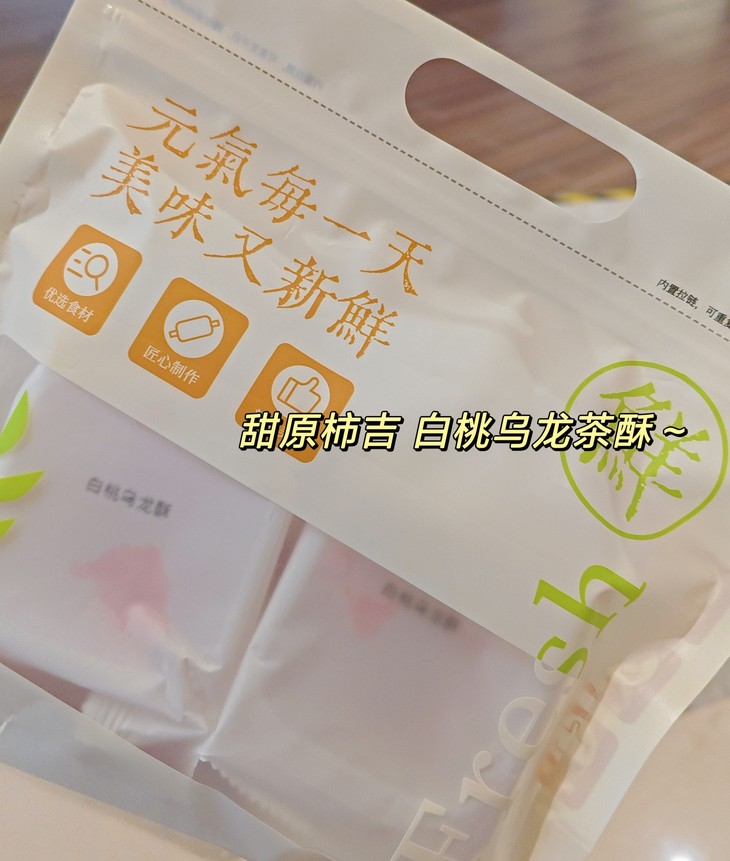 39.9/4袋❗️❗️【甜原柿吉白桃乌龙茶酥&龙井酥 】好吃到嗦手指🥺手工开酥的酥皮融合软糯拉丝雪媚娘☁️一口下去还有淡淡茶香🥰吃完嘴巴子都是茶香气 🍑白桃乌龙茶酥 阳山清甜白桃果肉😍自然清新
