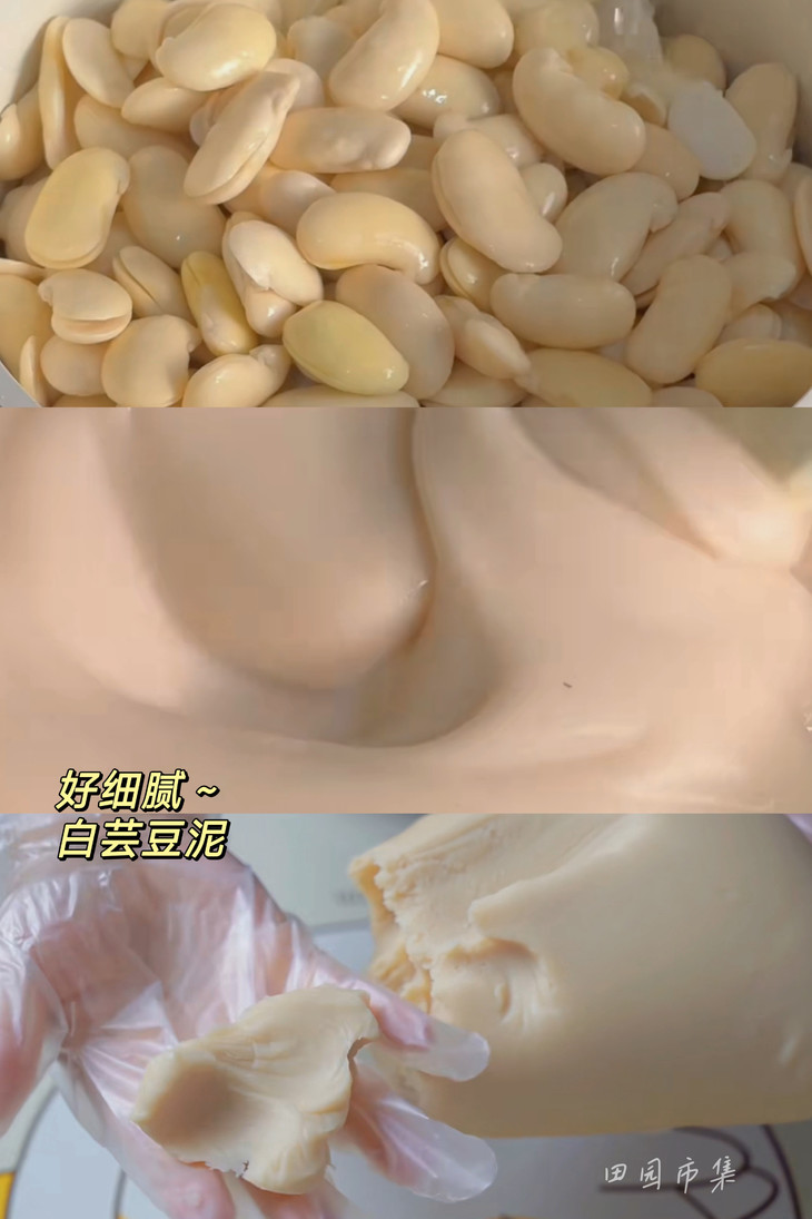 😎甜原柿吉定制配方 🥜添加15%白芸豆沙🥜 💥风靡内外的“豆中之👑” 爱美的女生对它一定不陌生啦 娱乐圈,素食圈,时尚圈都爱的神qi食材😎 🔍豆沙馅细腻顺滑的小秘密 白芸豆颗颗脱皮 这一步真的费人工🥺 完全熟制后搅打成泥 再进行炒干水分 接着反复用手工揉搓 才能更加醇香 细腻!!