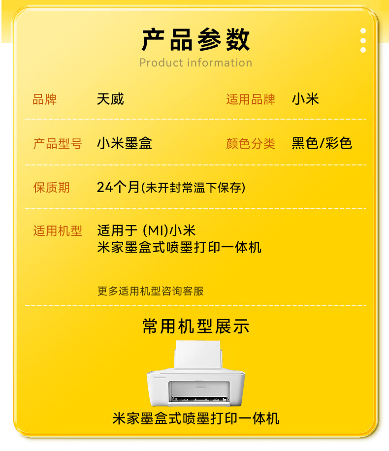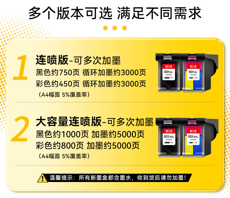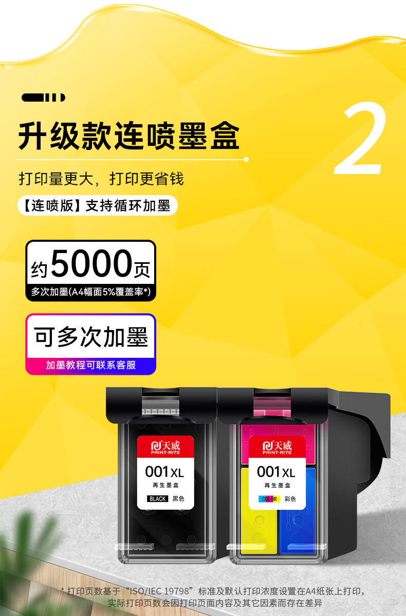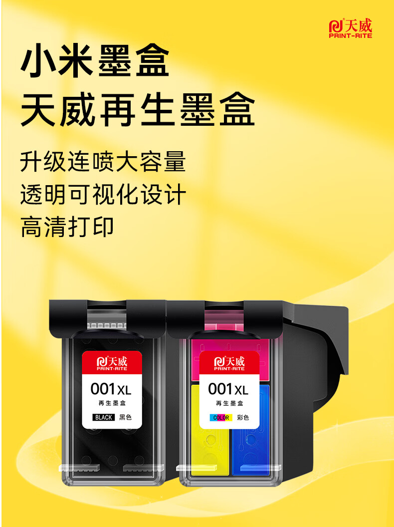 天威001墨盒适用小米米家喷墨打印一体机墨盒 小米墨盒墨水 小米001墨盒黑色 可加墨