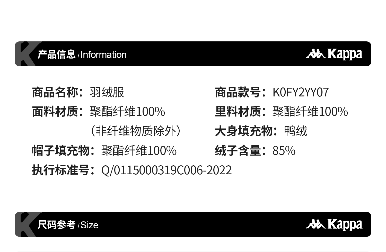 Kappa 运动羽绒服男2025新款冬季女连帽保暖外套防寒服K0FY2YY07
