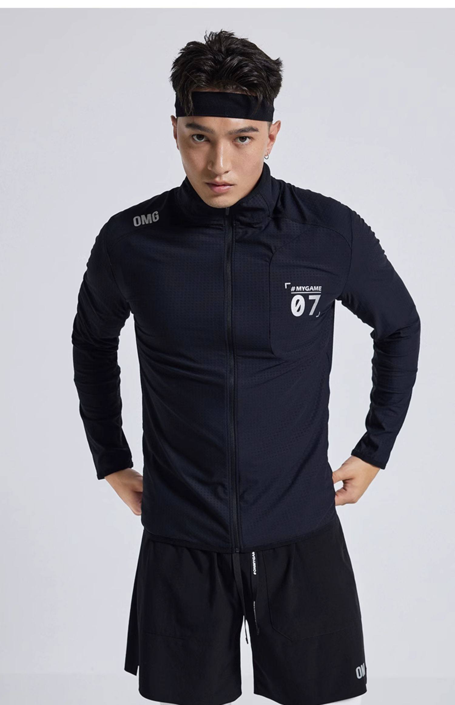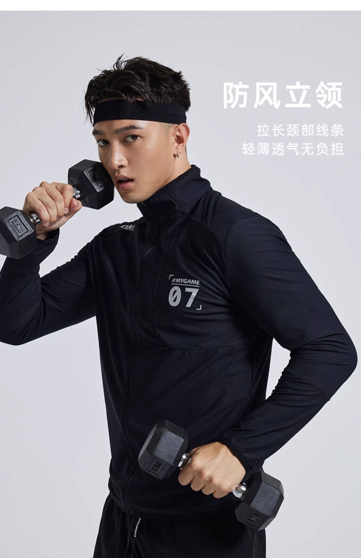 OMG运动 【四维高弹力】春秋立领透气健身外套男长袖衣服夹克训练