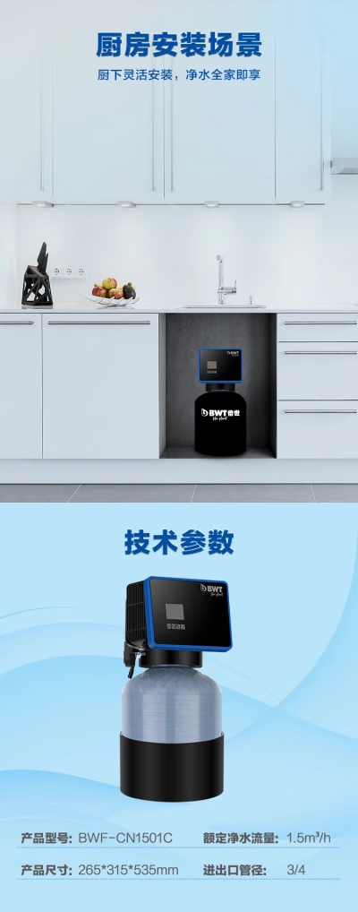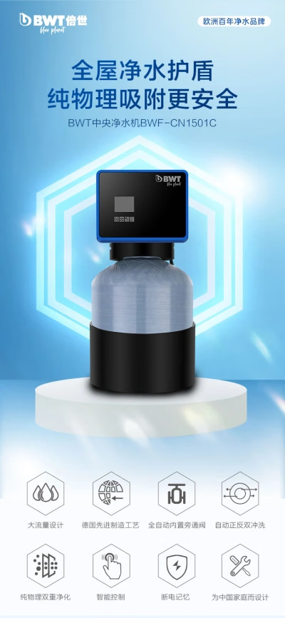 倍世/净水/BWF-CN1501C/净水机 全自动内置旁通阀 全自动反冲洗 进口优质活性炭 断电记忆功能