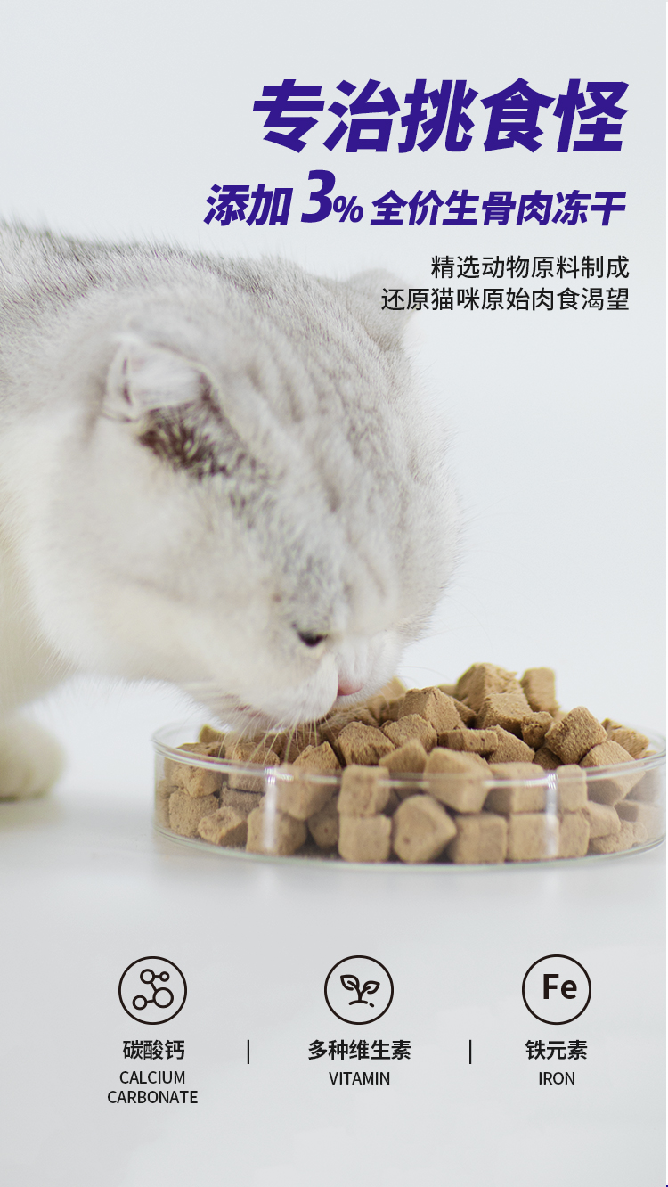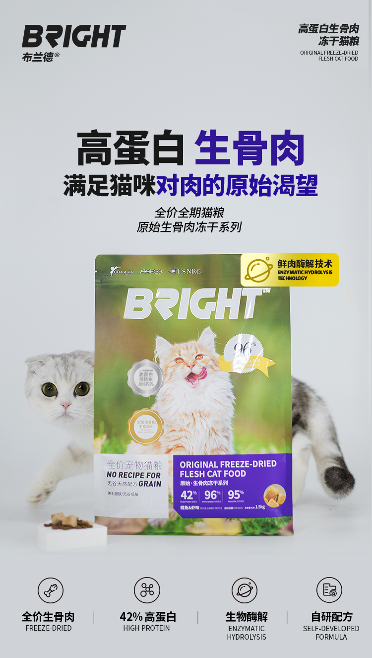 布兰德全价猫粮成猫生骨肉高蛋白配方无谷冻干猫粮1.5kg