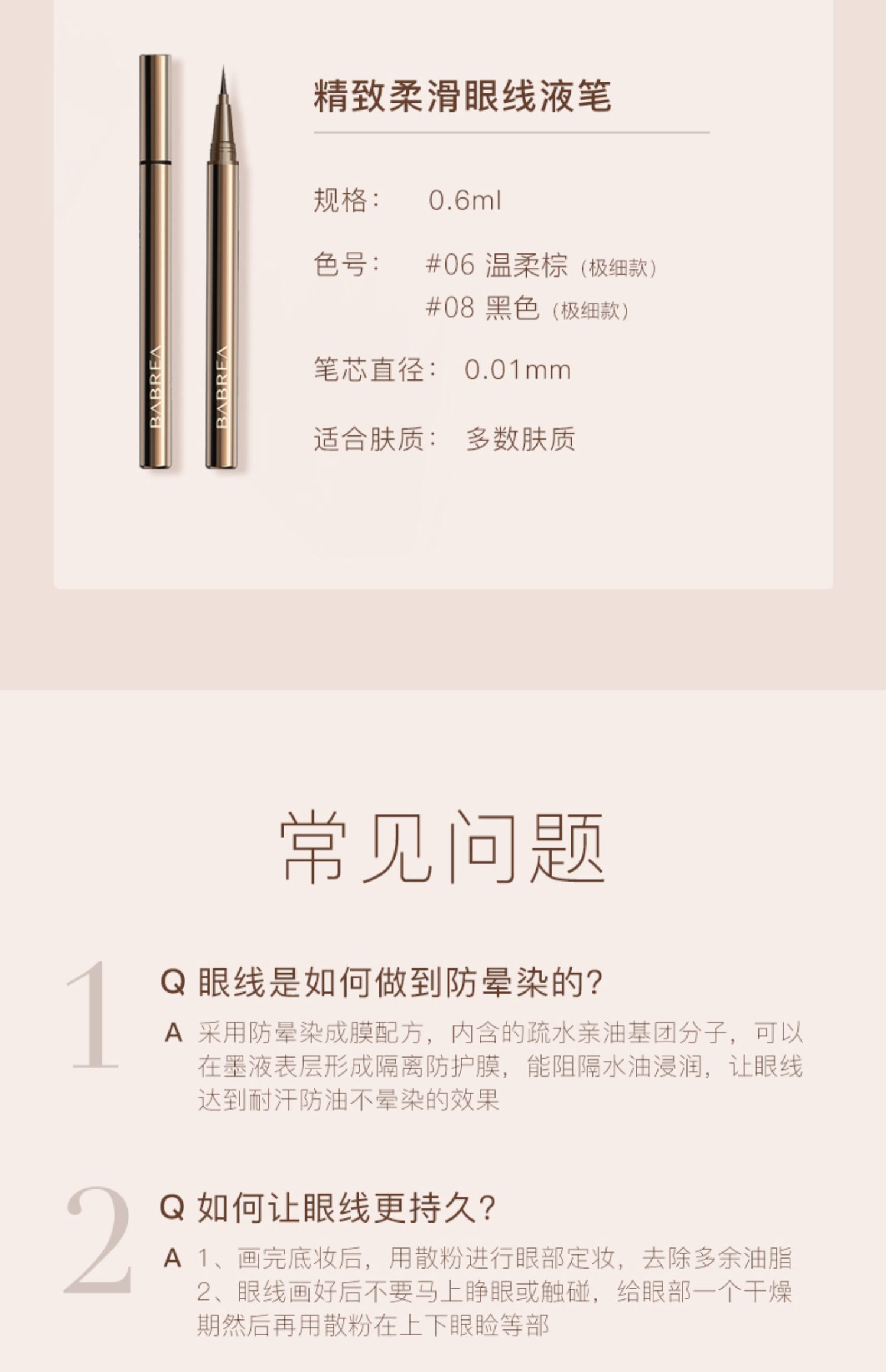 【新增】芭贝拉 眼线液笔 0.6ml/ 晴致柔滑眼线液笔 极细款