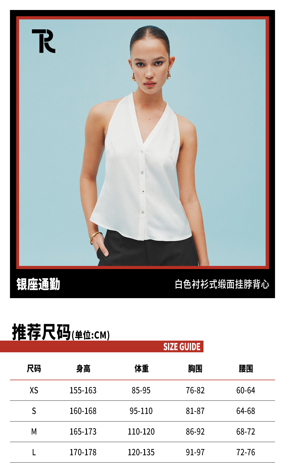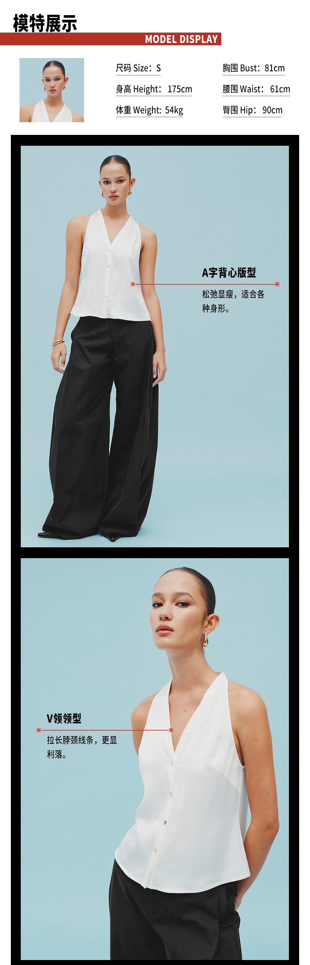 TR她热 银座通勤 白色缎面V领单排扣简约风百搭通勤衬衫式挂脖背心