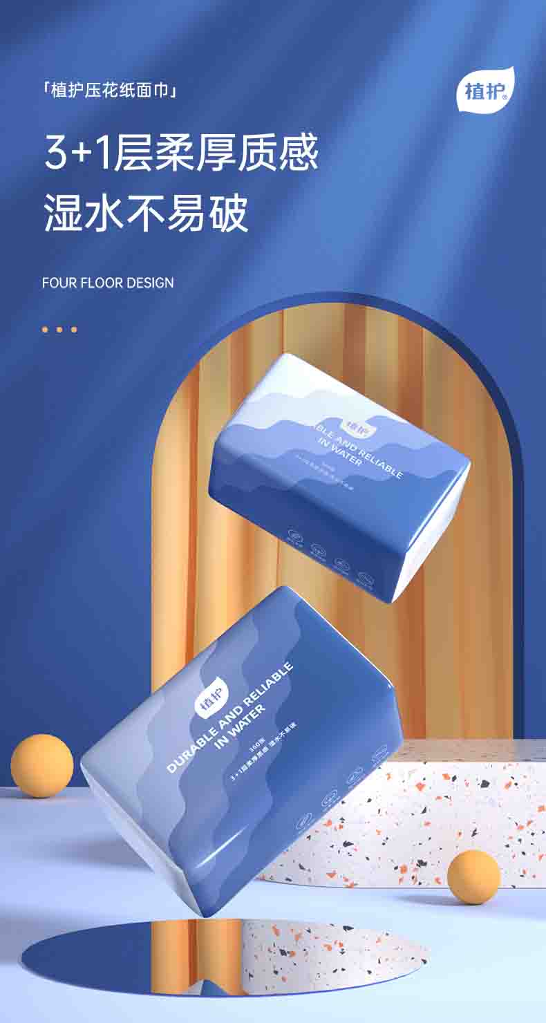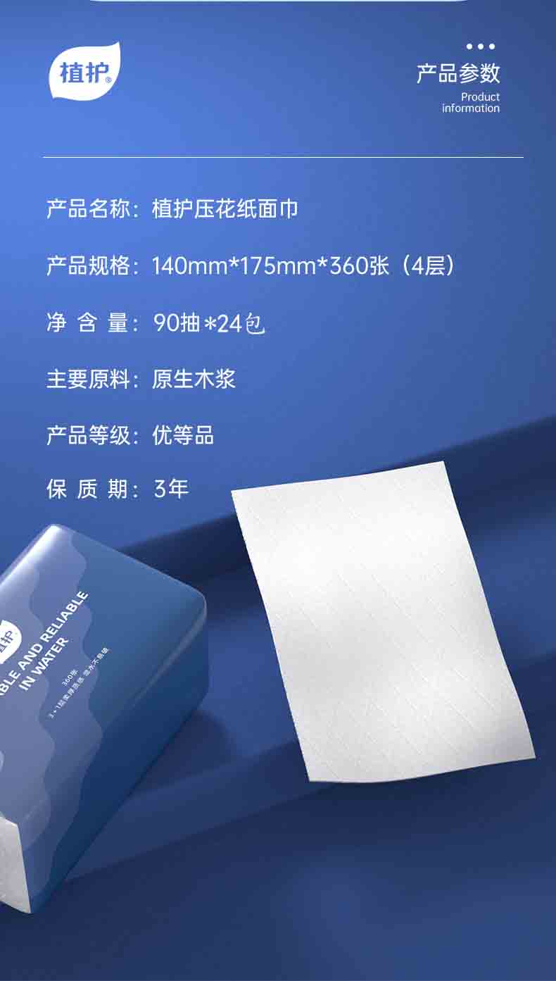 植护 黯蓝烟波压花纸面巾4层90抽×24包
