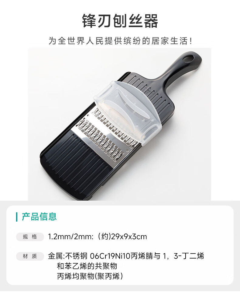 NITORI宜得利家居 刨丝器土豆丝切丝切片刨多功能刨丝切菜器 锋刃刨丝器 黑色1.2mm