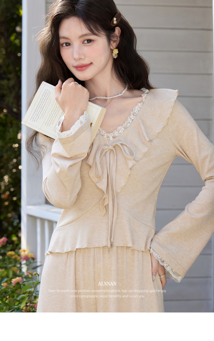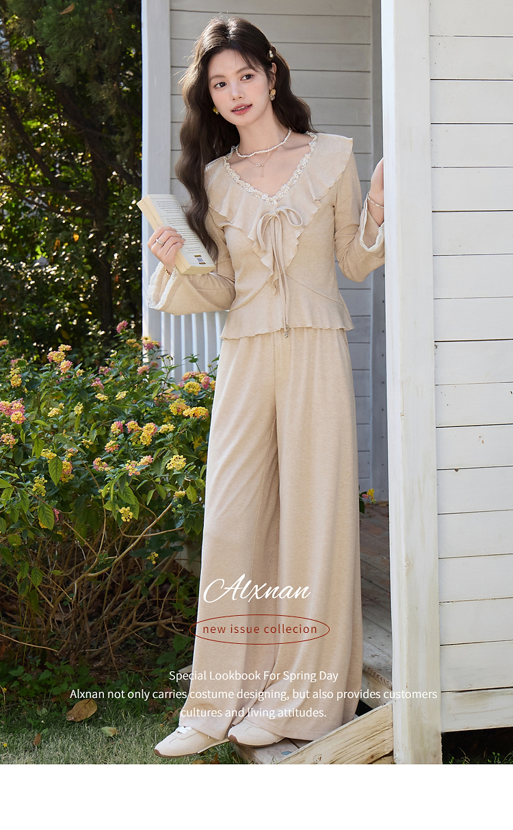 鹿向南「林间絮语」气质燕麦色时尚套装女春季长袖法式上衣两件套