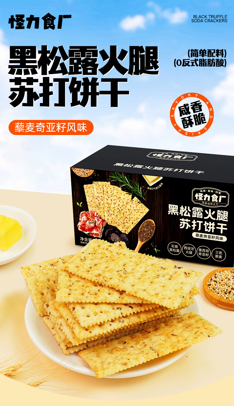 【品名/规格】【怪力食厂】黑松露火腿苏打饼干(508g/箱,22包/箱,3片/包)片数、包数仅作为参考,不作为售后标准