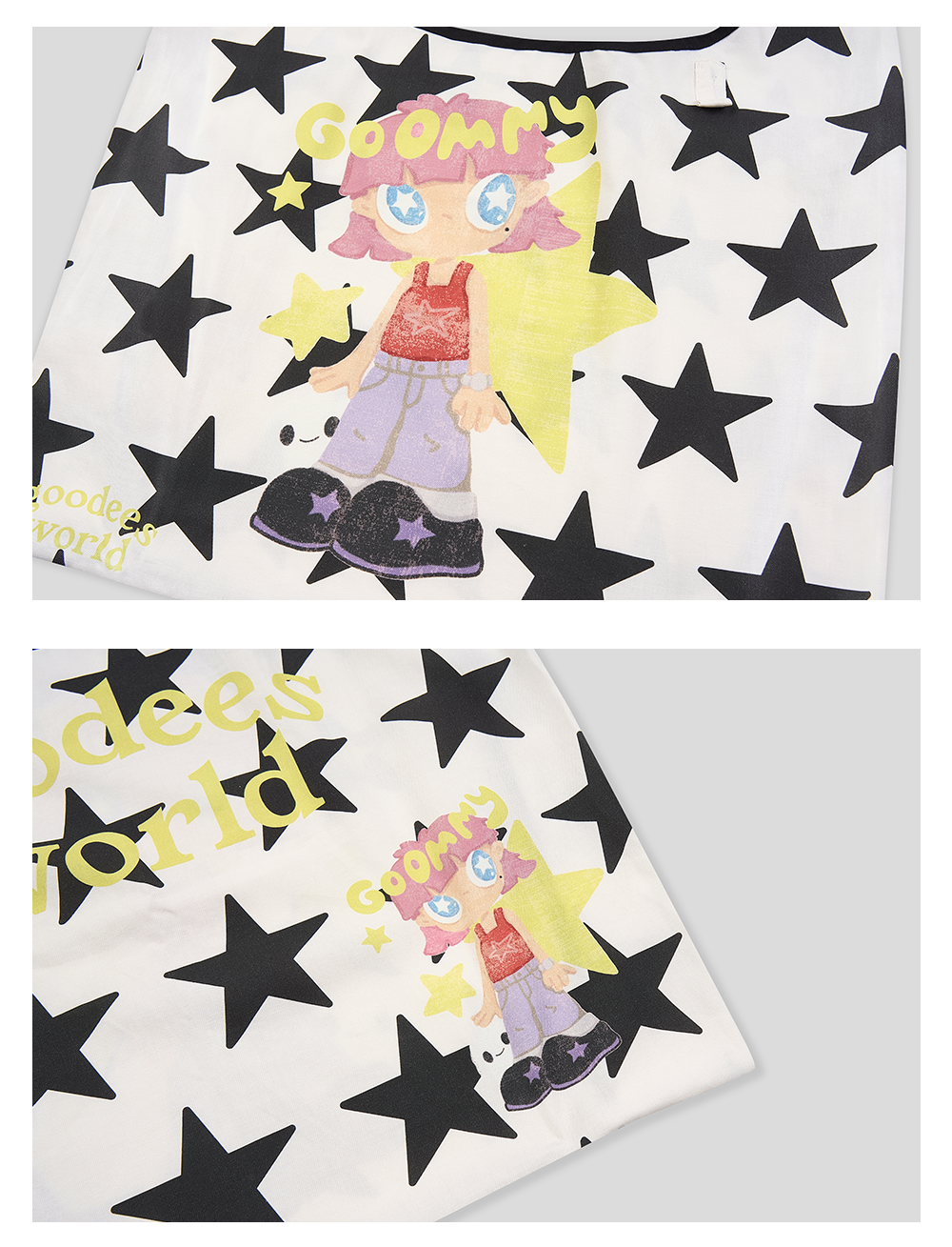 GOODBAI GOODEES 机器小猫logo做旧图案印花撞色oversize长袖T恤