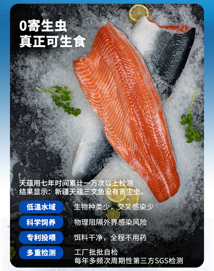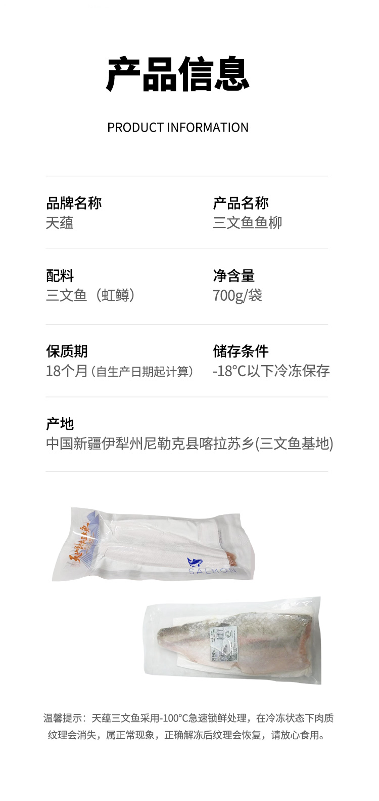 【严选鱼柳】天蕴 新疆三文鱼鱼柳 700g/盒 真正可生食