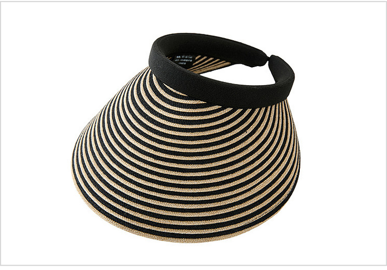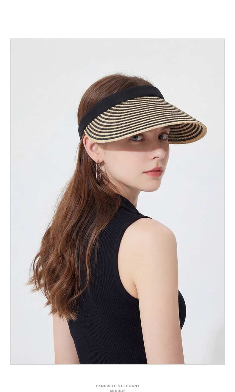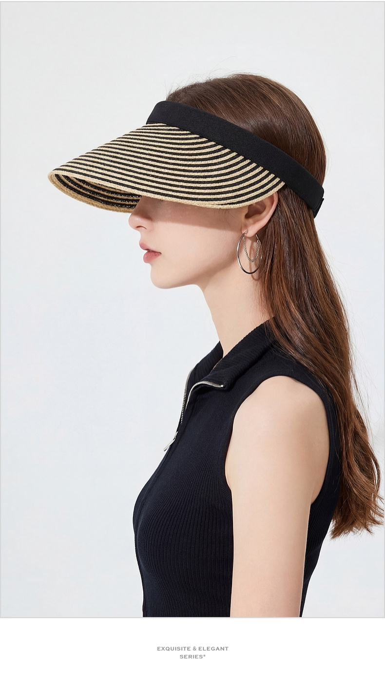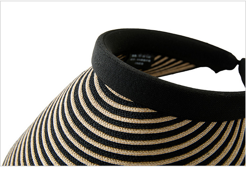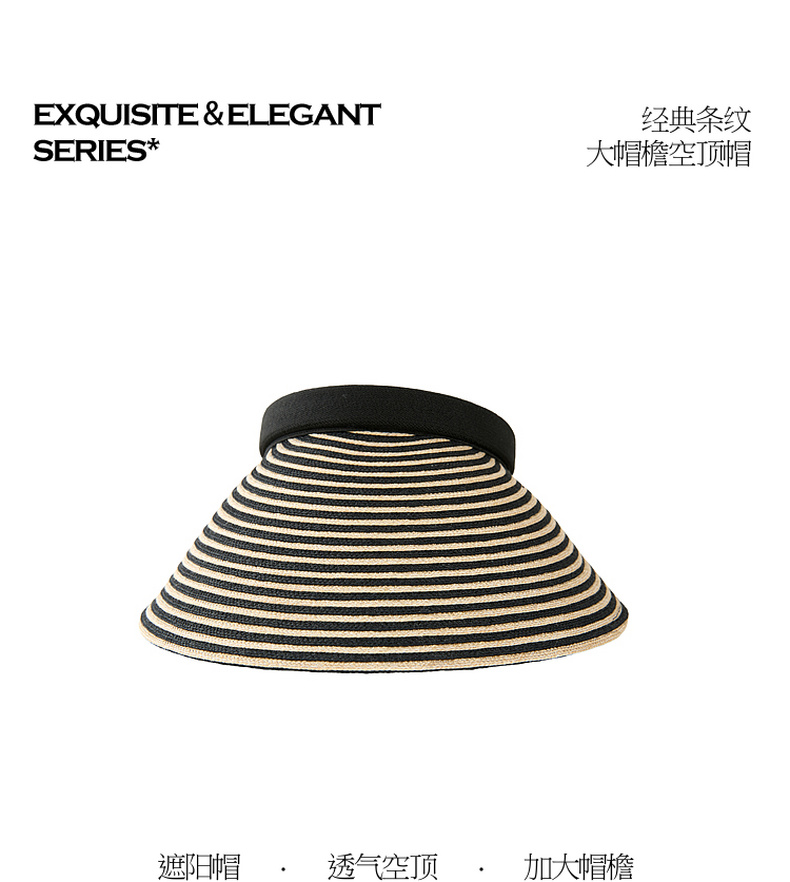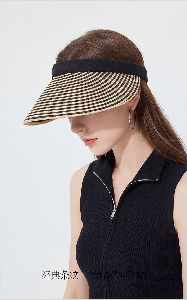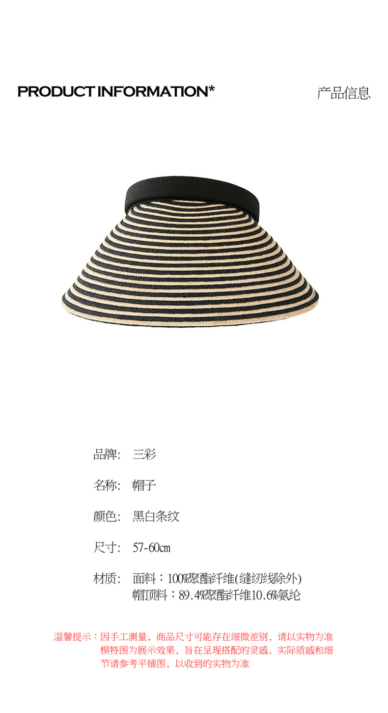 三彩2026新款空顶大帽檐遮阳帽黑白条纹海边出游夏编织帽子鸭舌女