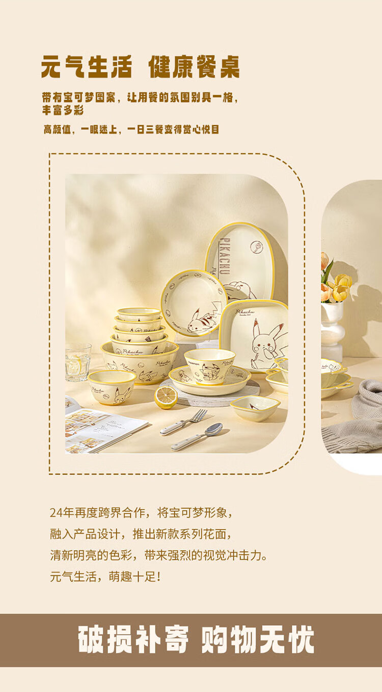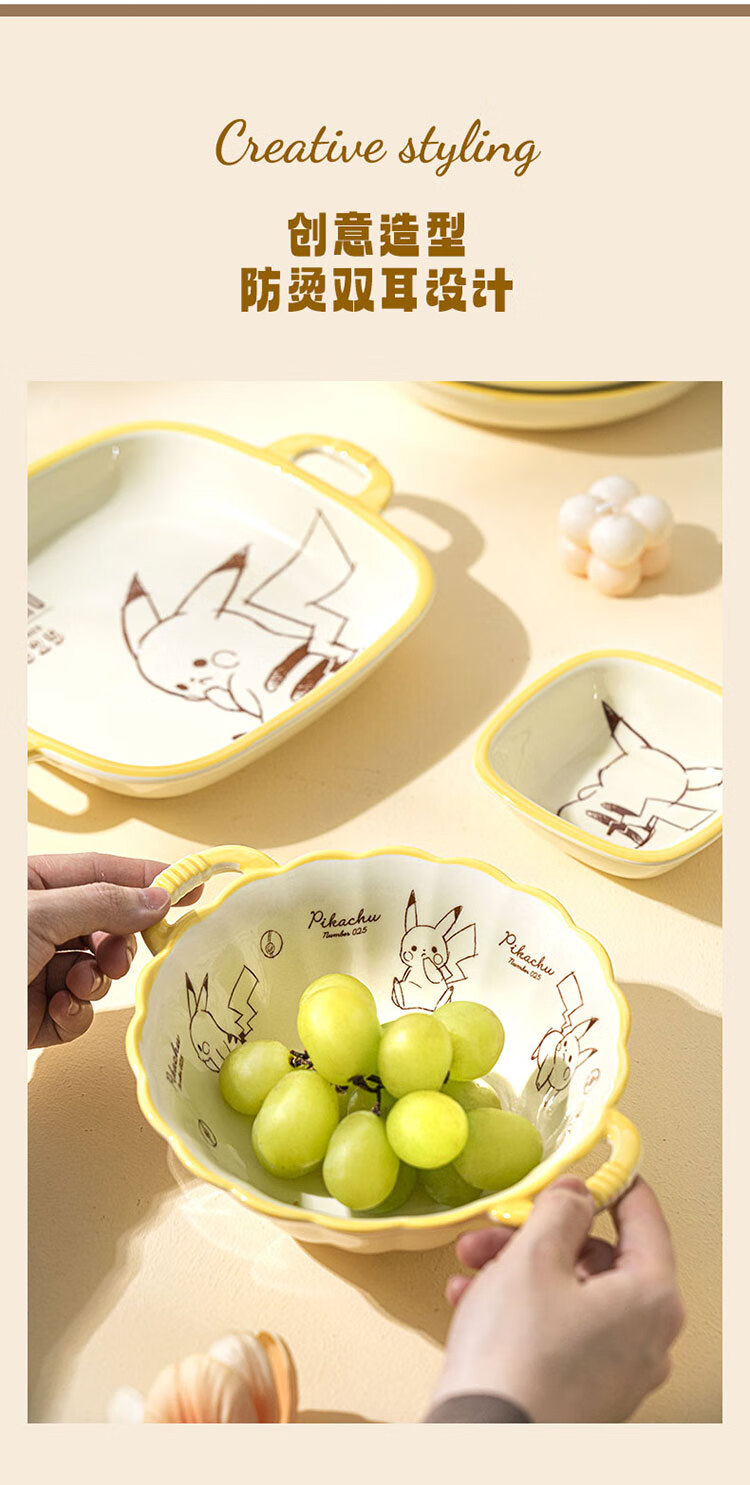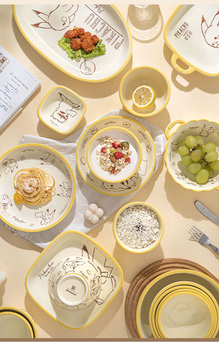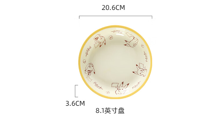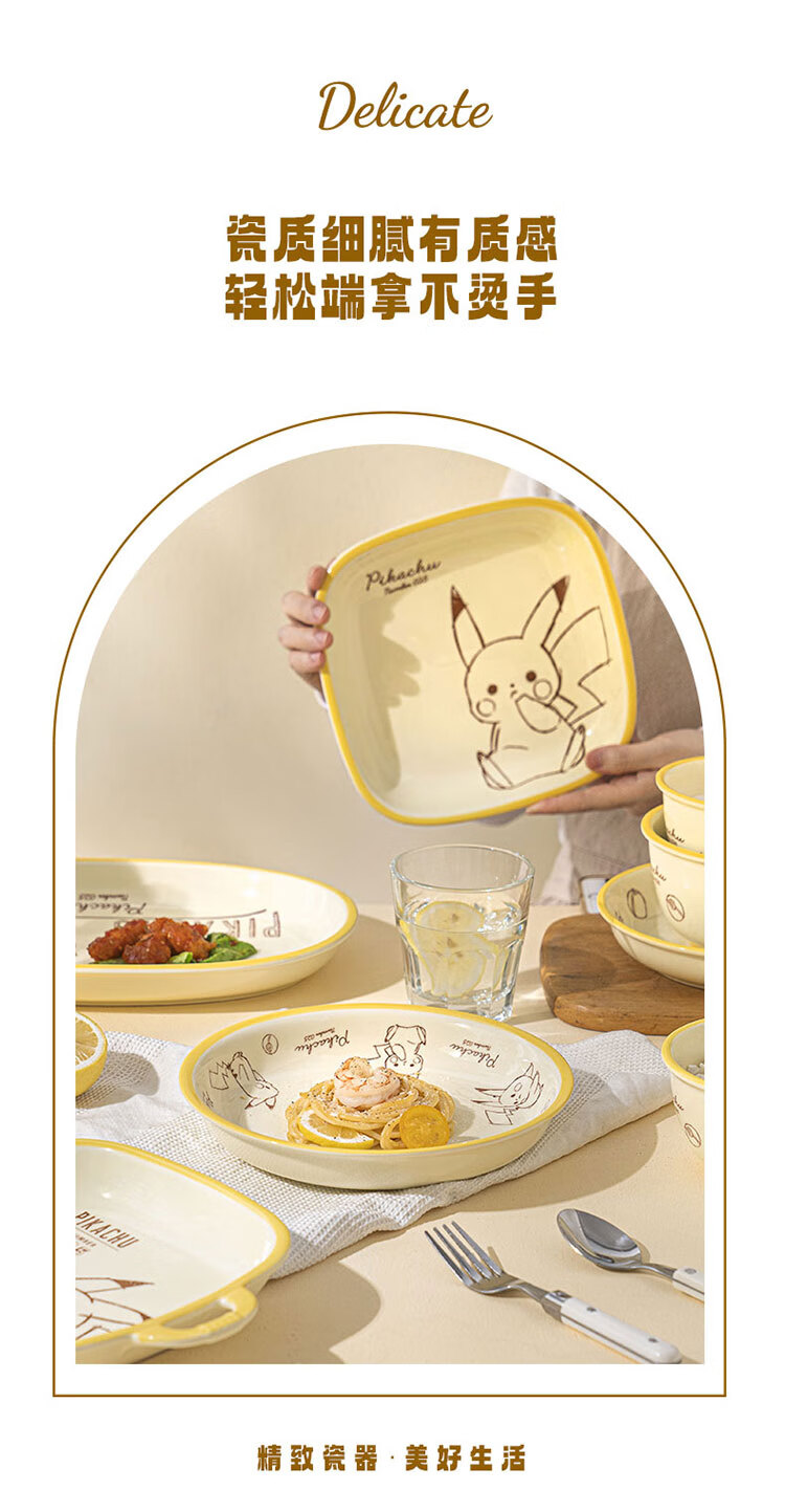 顺祥宜得利家居 皮卡丘陶瓷餐具碗碟盘子卡通餐碗釉下彩宝可梦童真