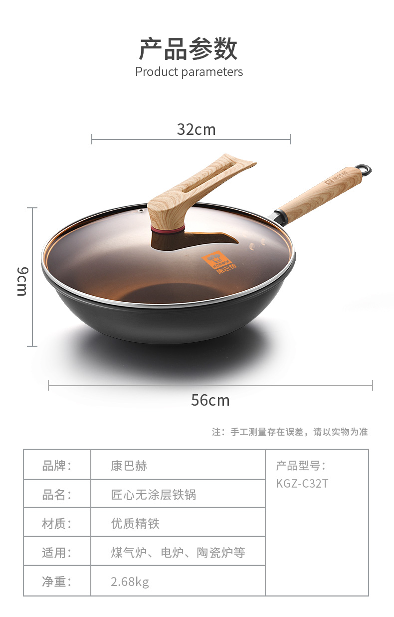 康巴赫 匠心无涂层铁锅32cm KGZ-C32T