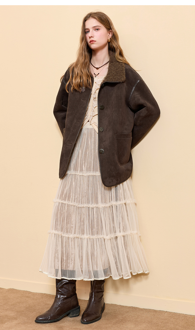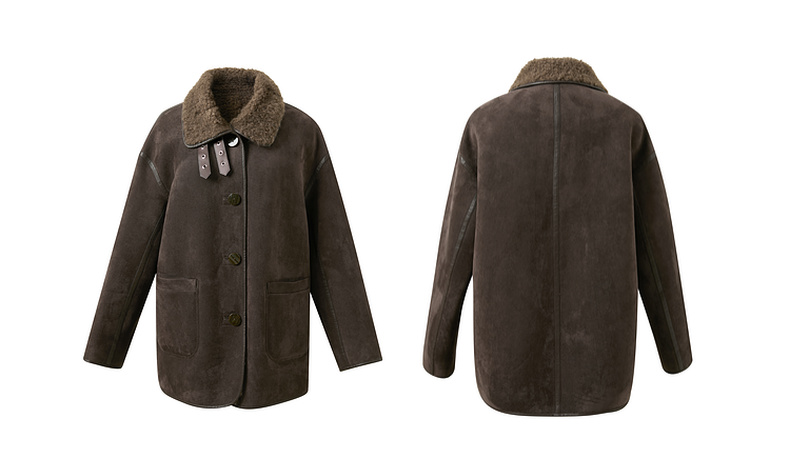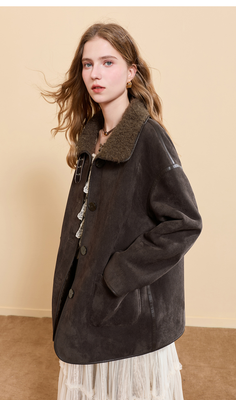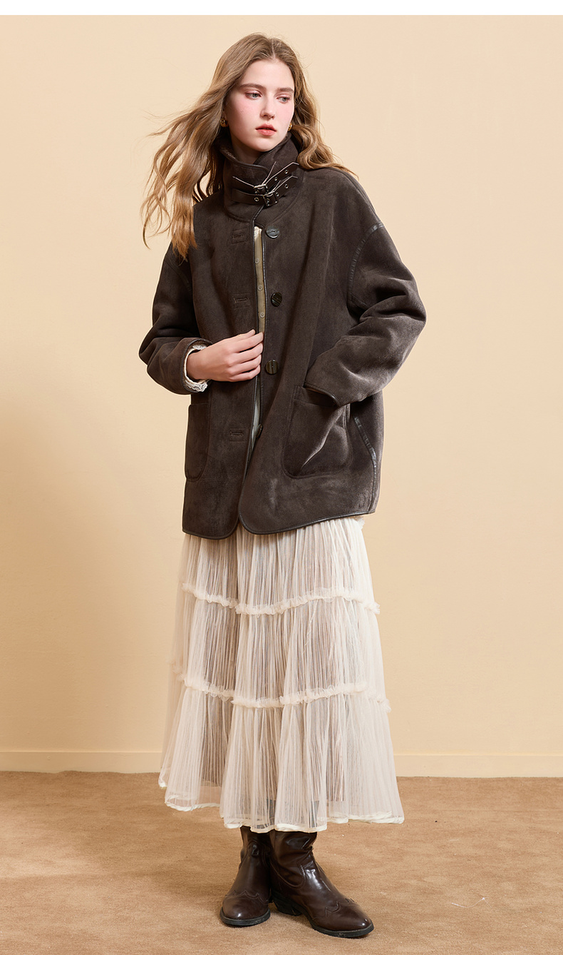 三彩2025冬季新款仿麂皮环保皮草毛毛外套立领中长两面穿宽松M