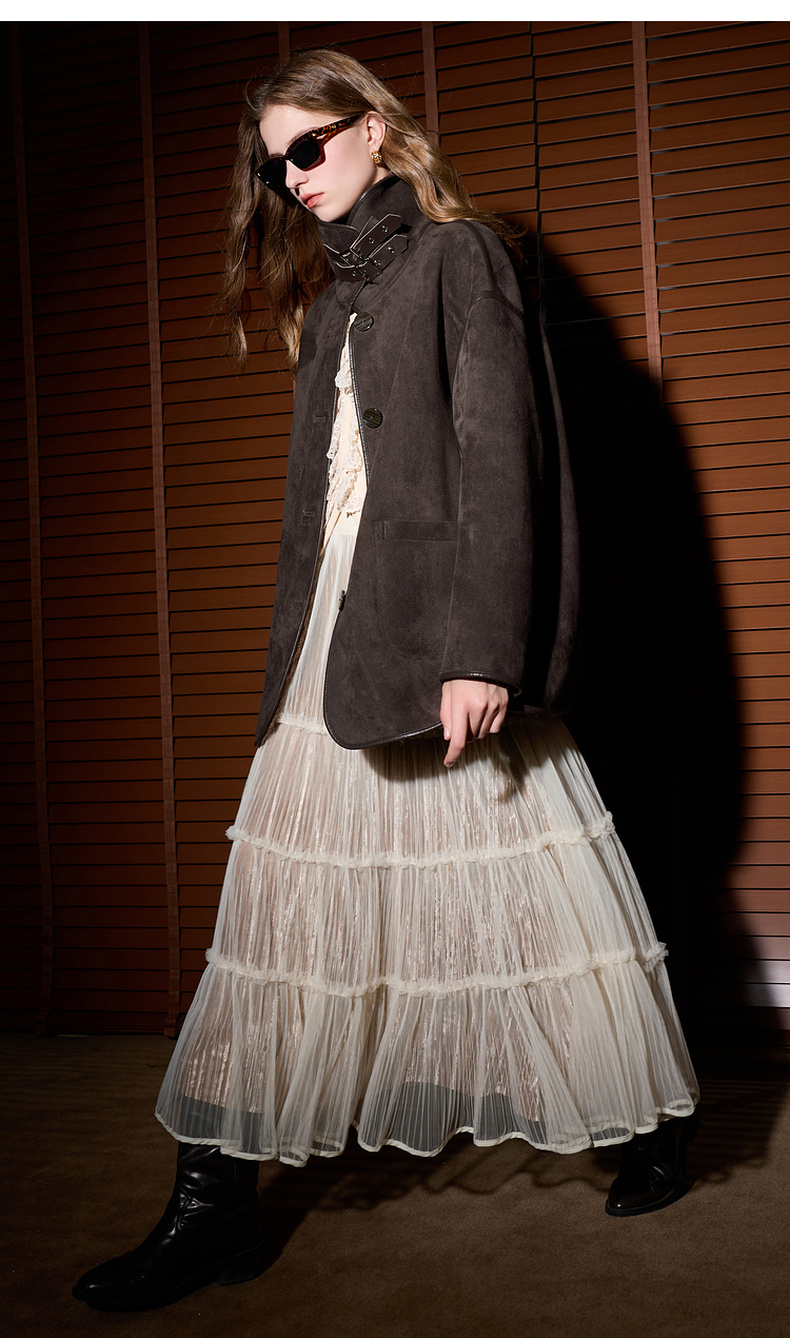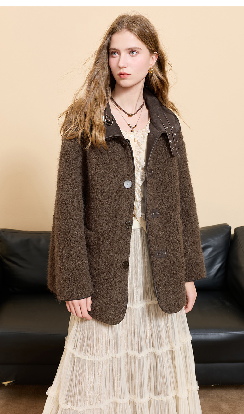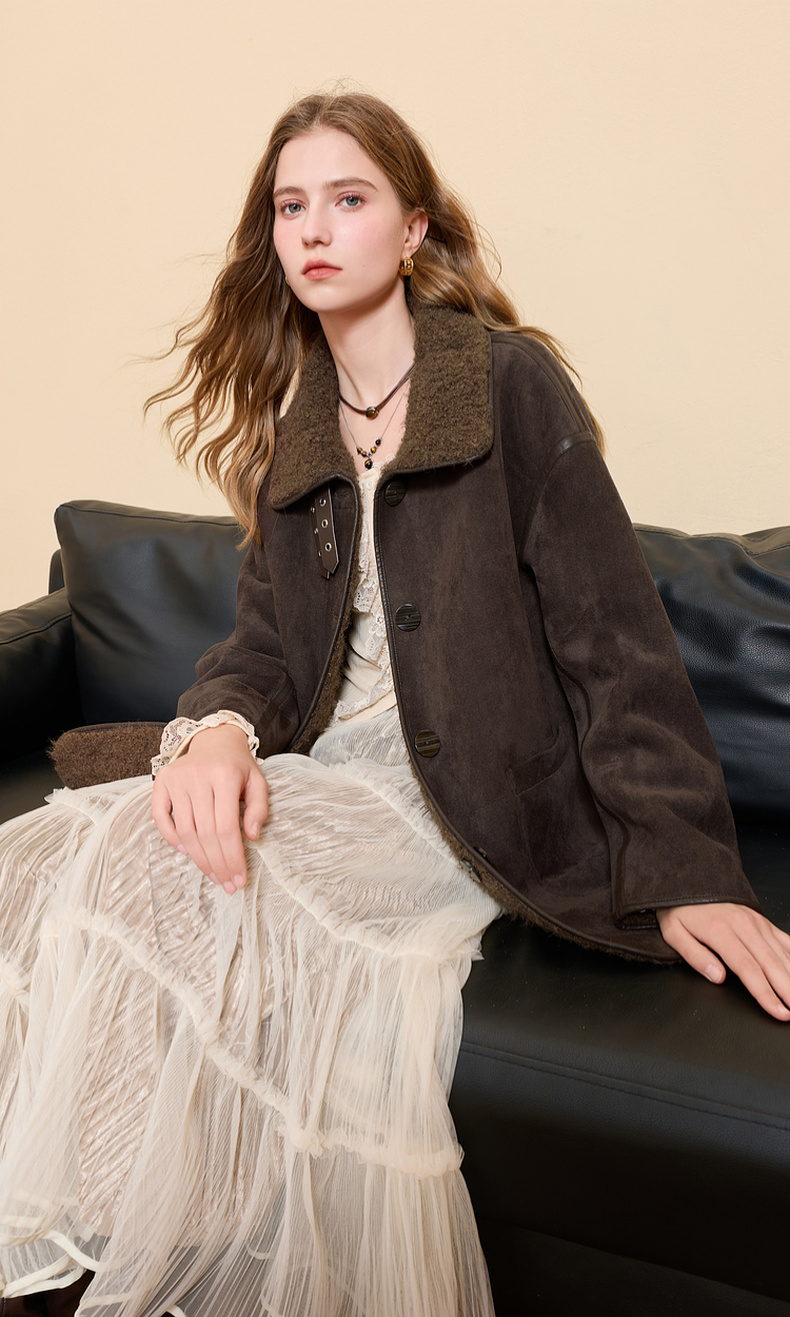 三彩2025冬季新款仿麂皮环保皮草毛毛外套立领中长两面穿宽松M