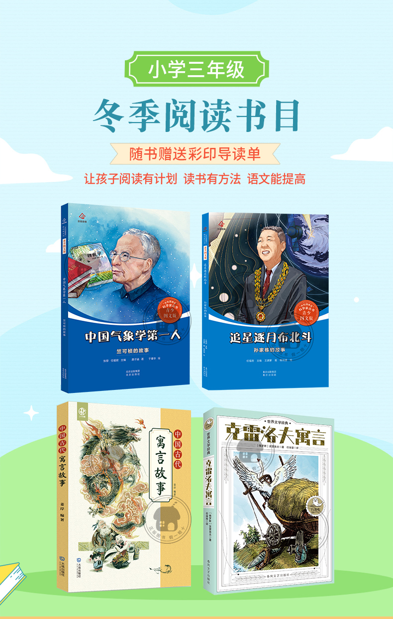 三年级适读《中国气象学第一人·竺可桢的故事》《追星逐月布北斗·孙家栋的故事》《伊索寓言》《克雷洛夫寓言》