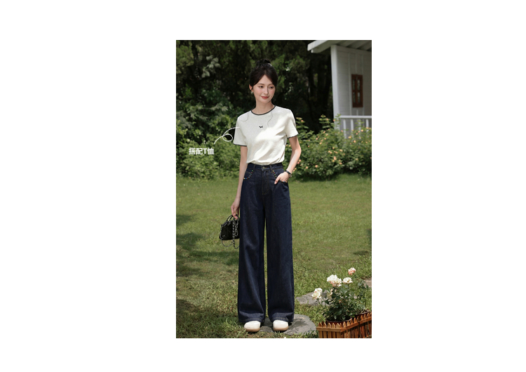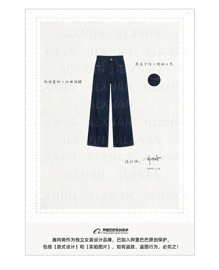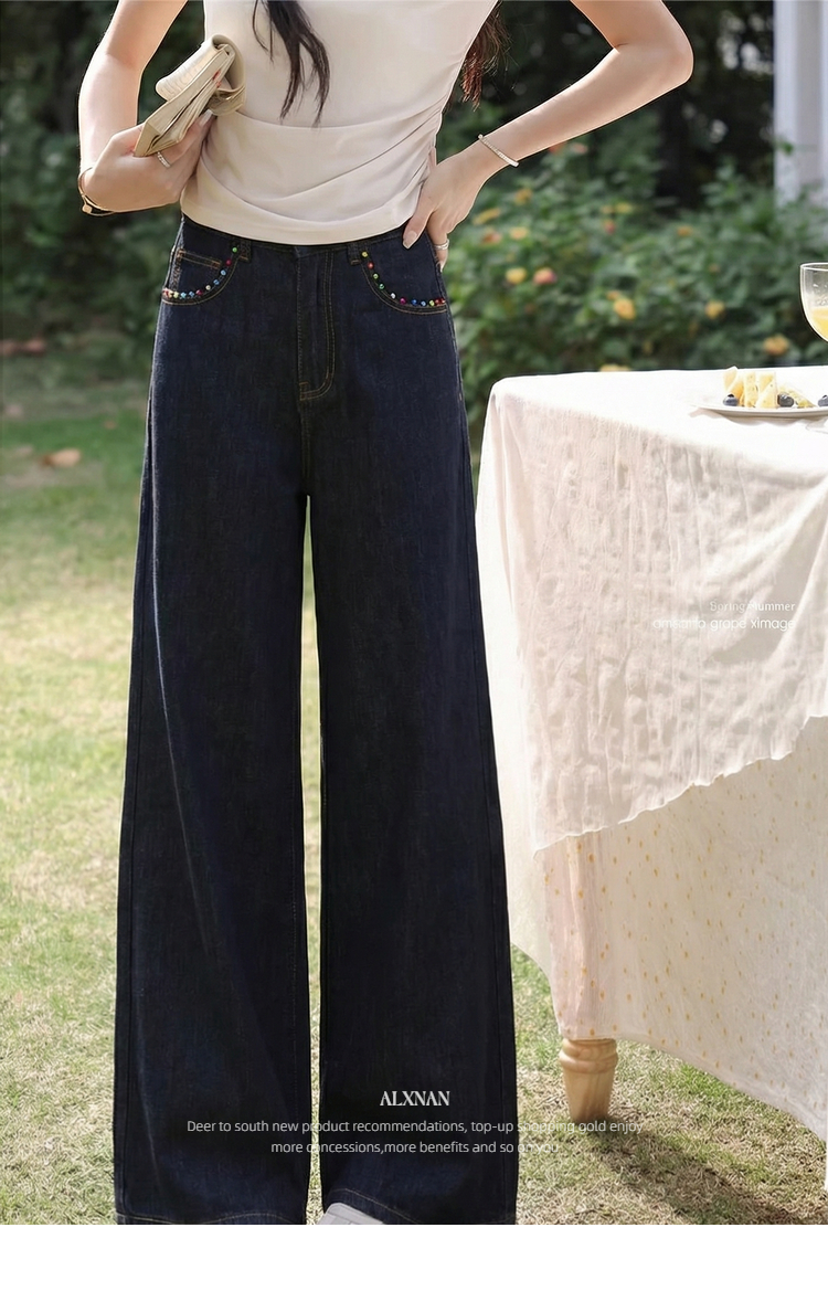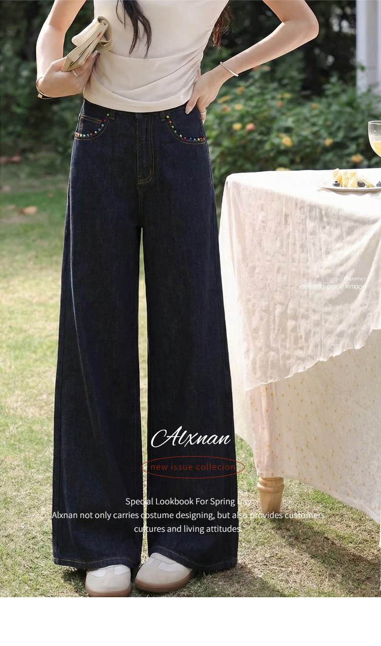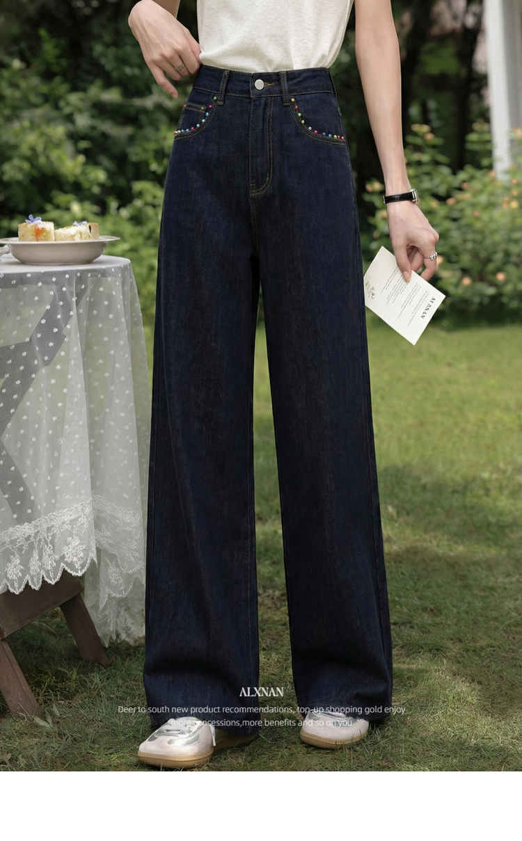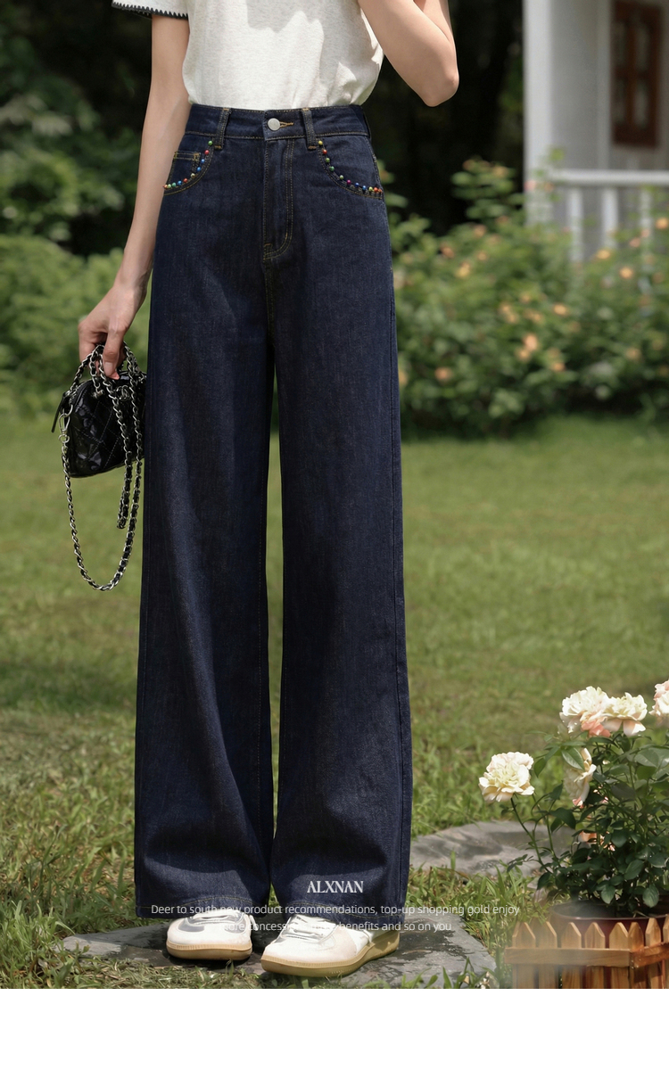 鹿向南「漫步雅姿」蓝色牛仔裤女春季新款巨好看宽松高腰阔腿裤