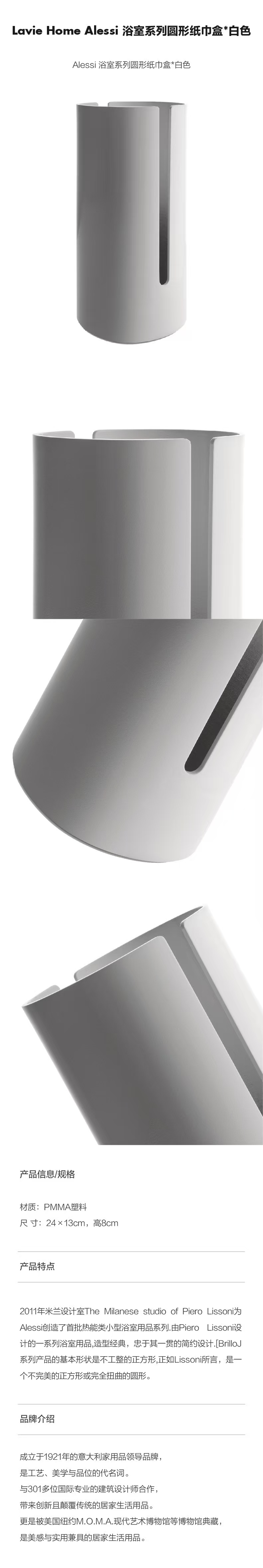 廊湾 Lavie Home Alessi 浴室系列圆形纸巾盒*白色