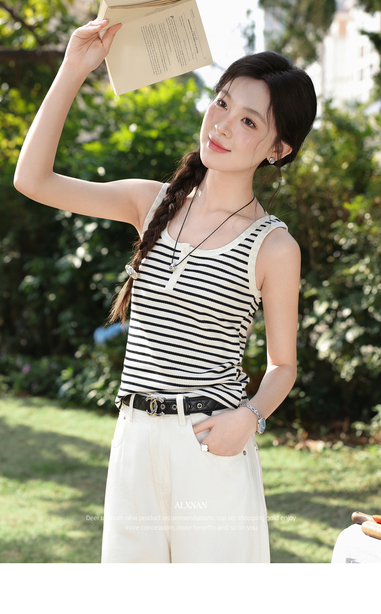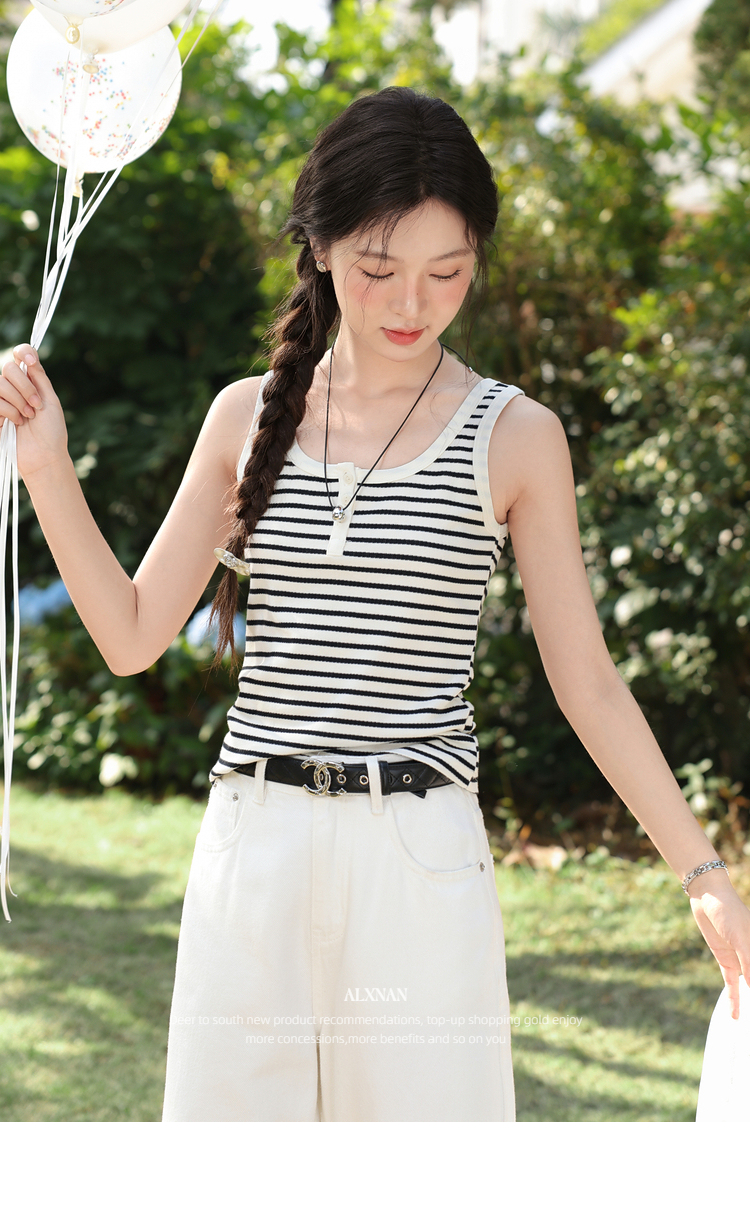 鹿向南「线条序曲」条纹无袖吊带背心女春新款修身显瘦叠穿小上衣