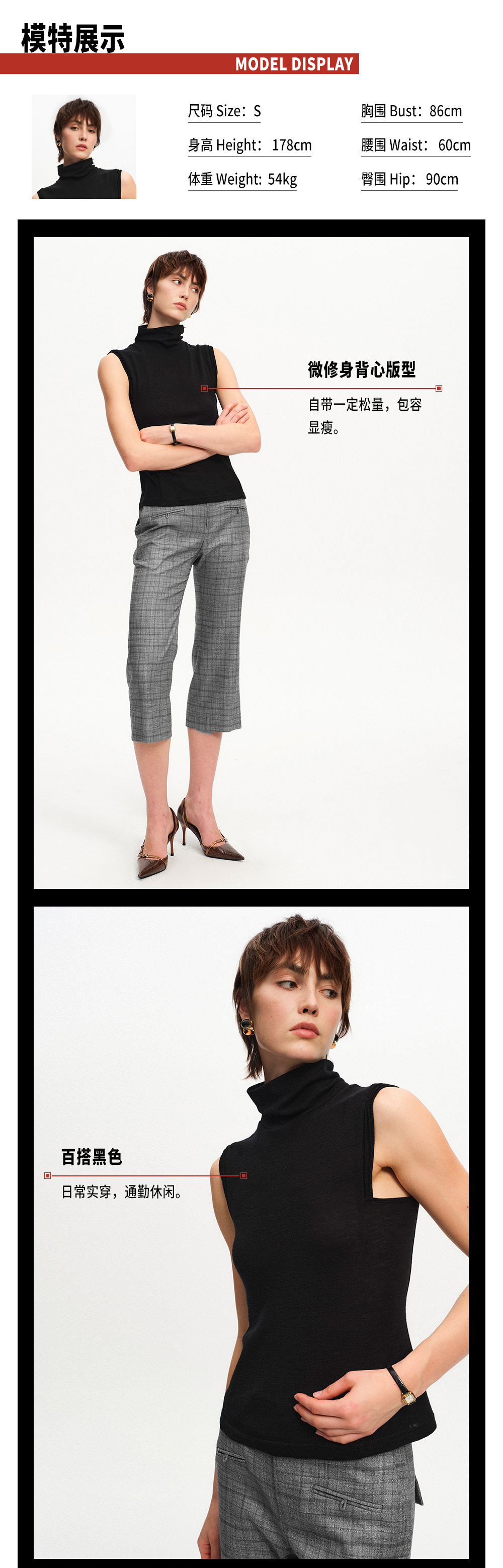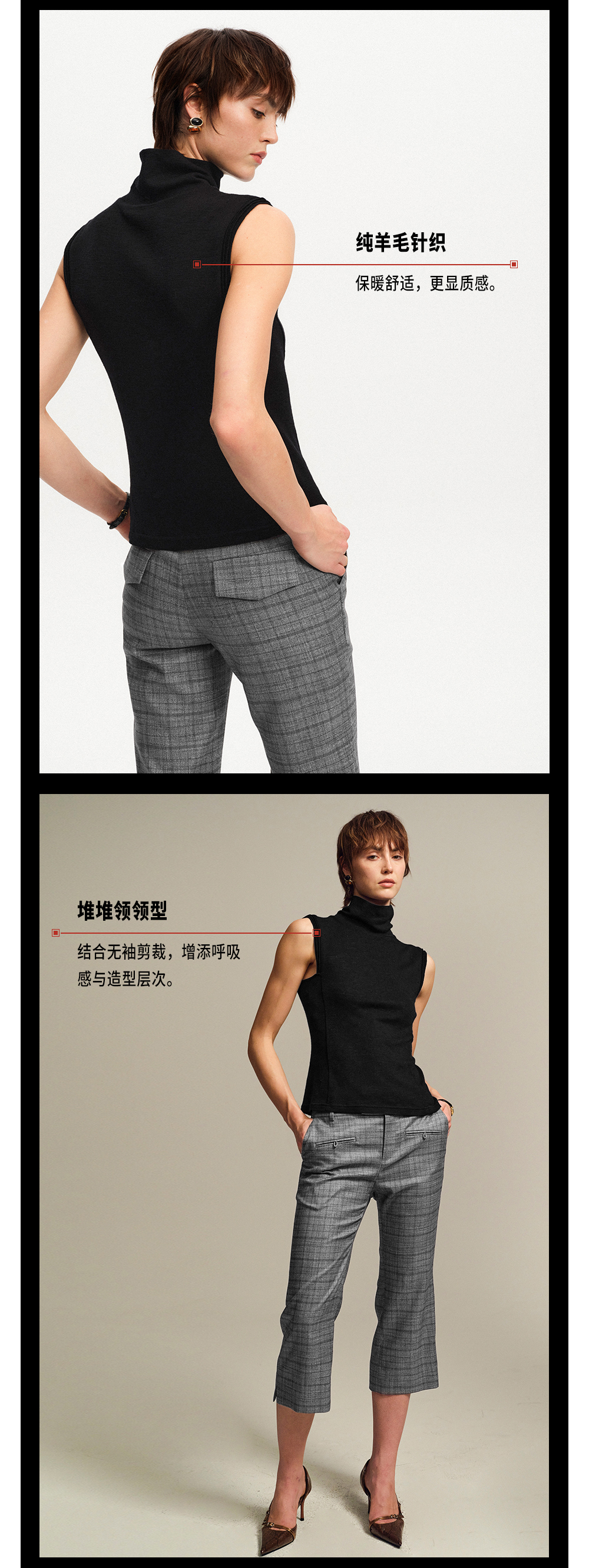 TR她热 松弛主义 黑色纯羊毛显瘦气质百搭通勤堆堆领无袖针织背心