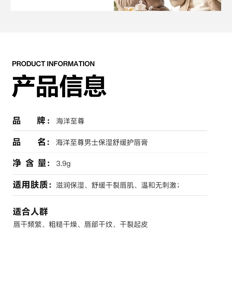 商城【理容香氛】海洋至尊男士保湿舒缓护唇膏3.9G