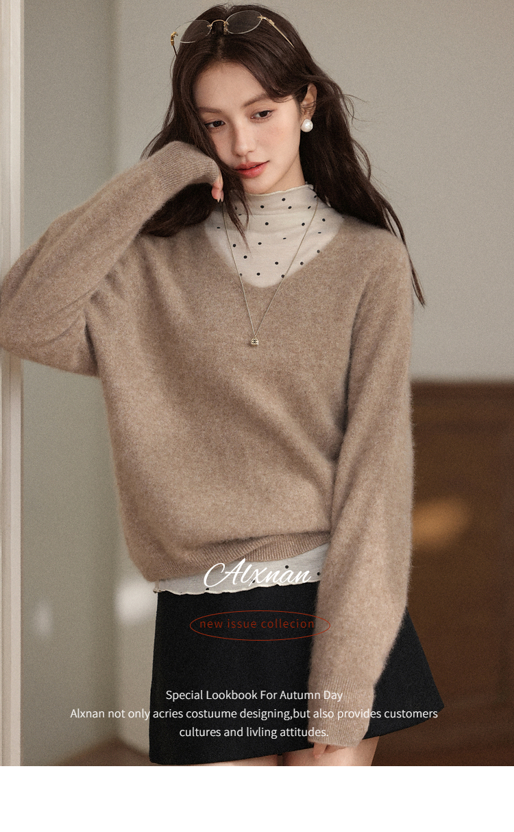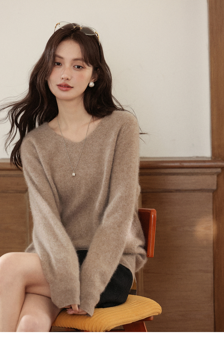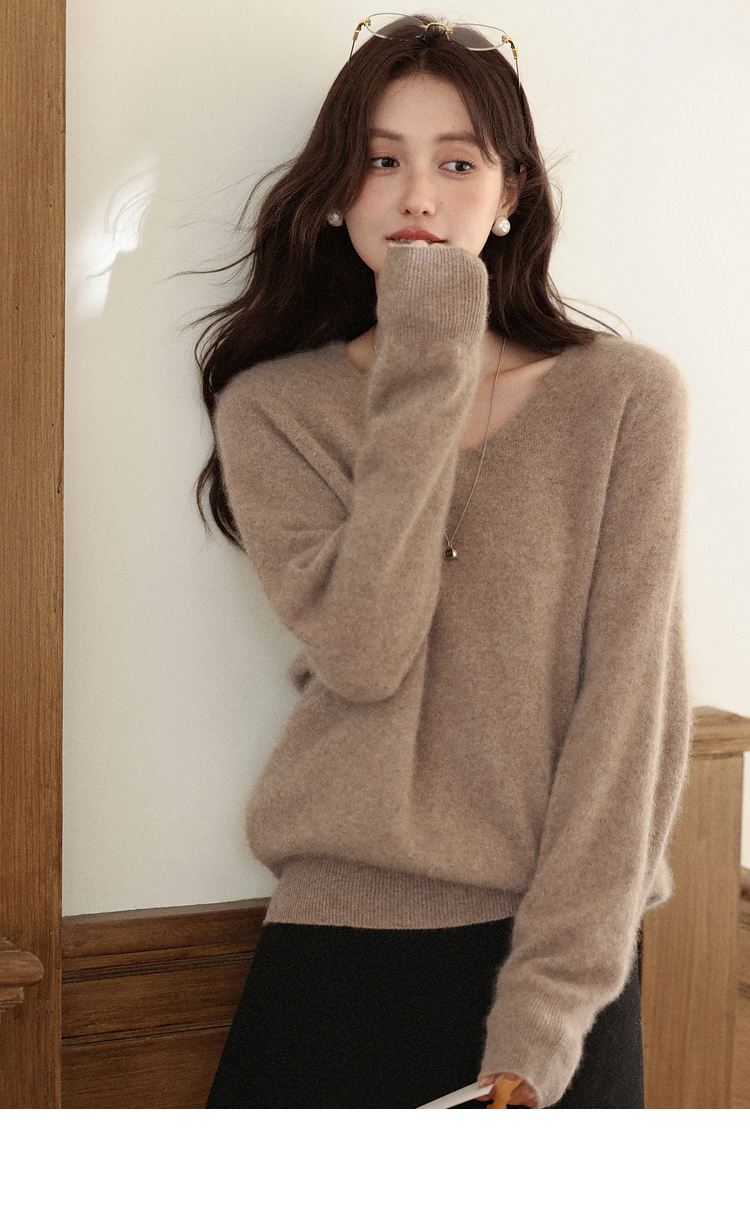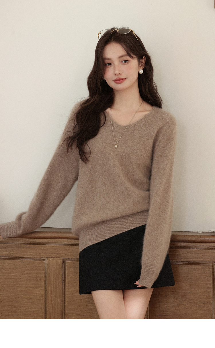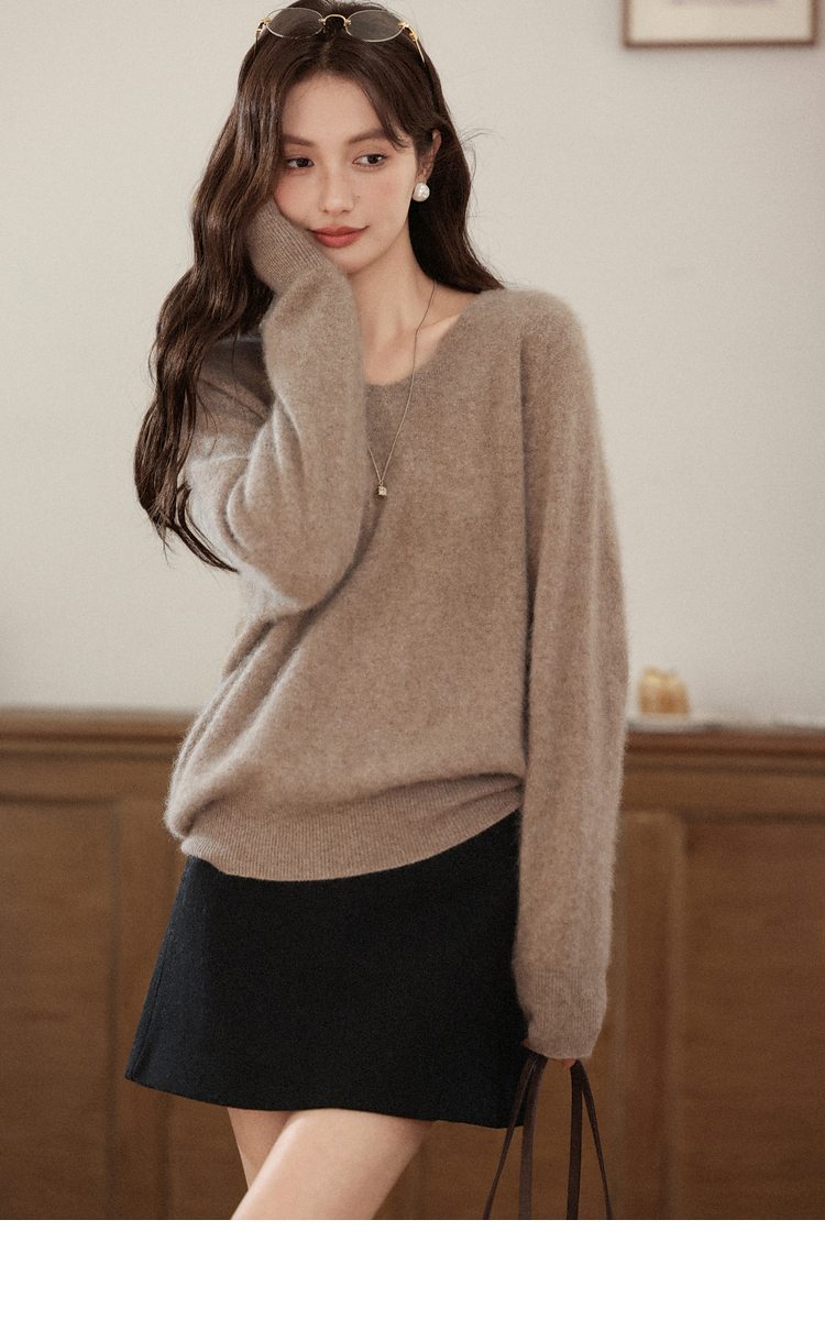 黑标 鹿向南「羊绒拉毛」羊毛无缝针织衫女秋冬咖色打底毛衣上衣
