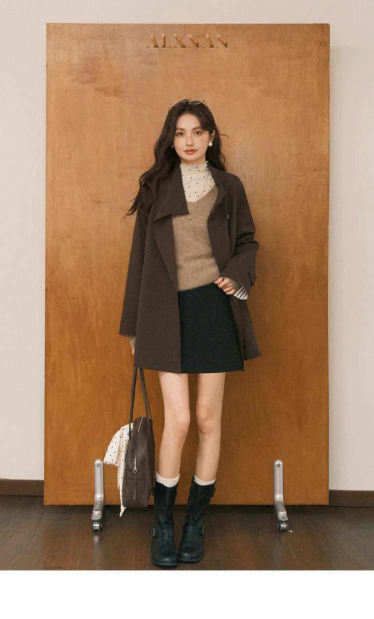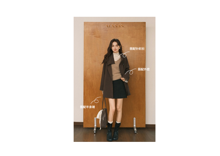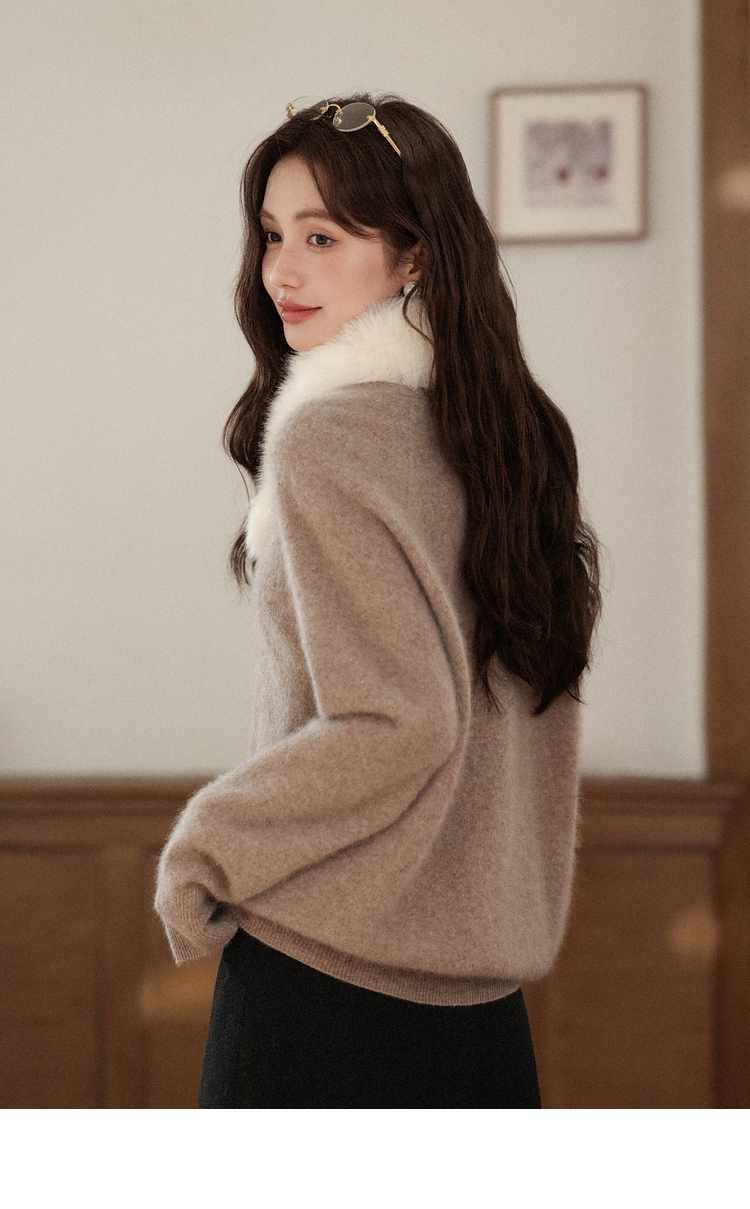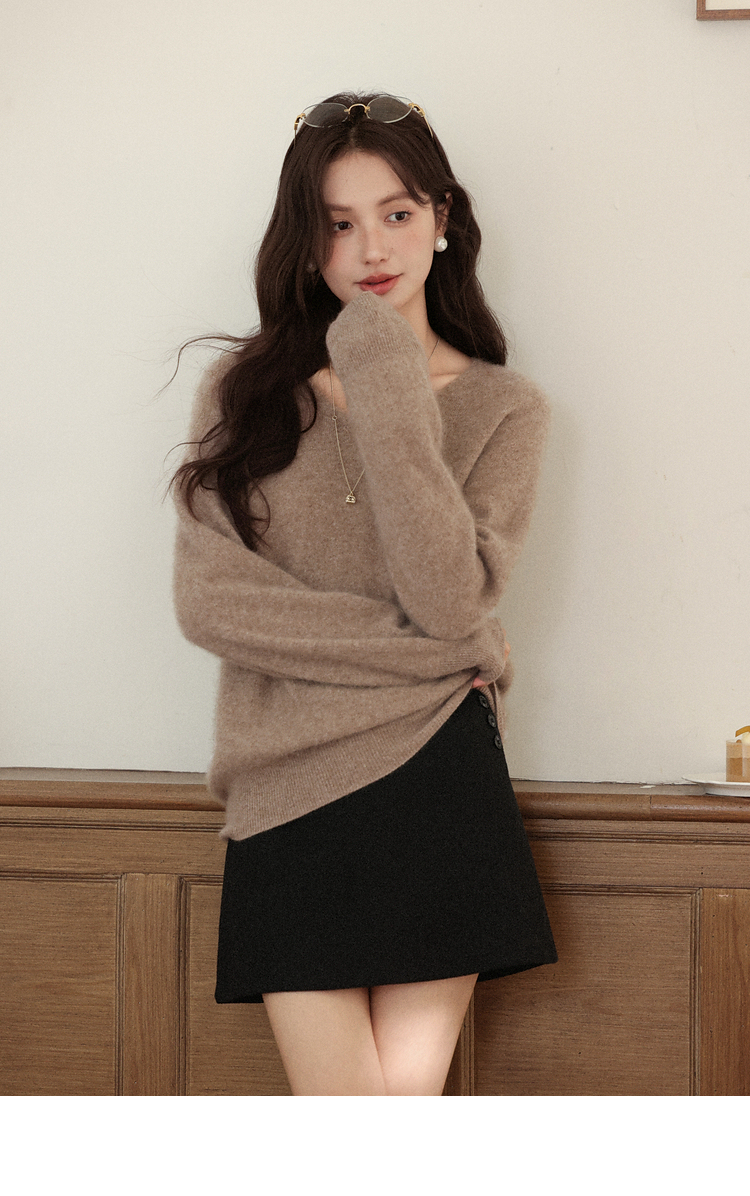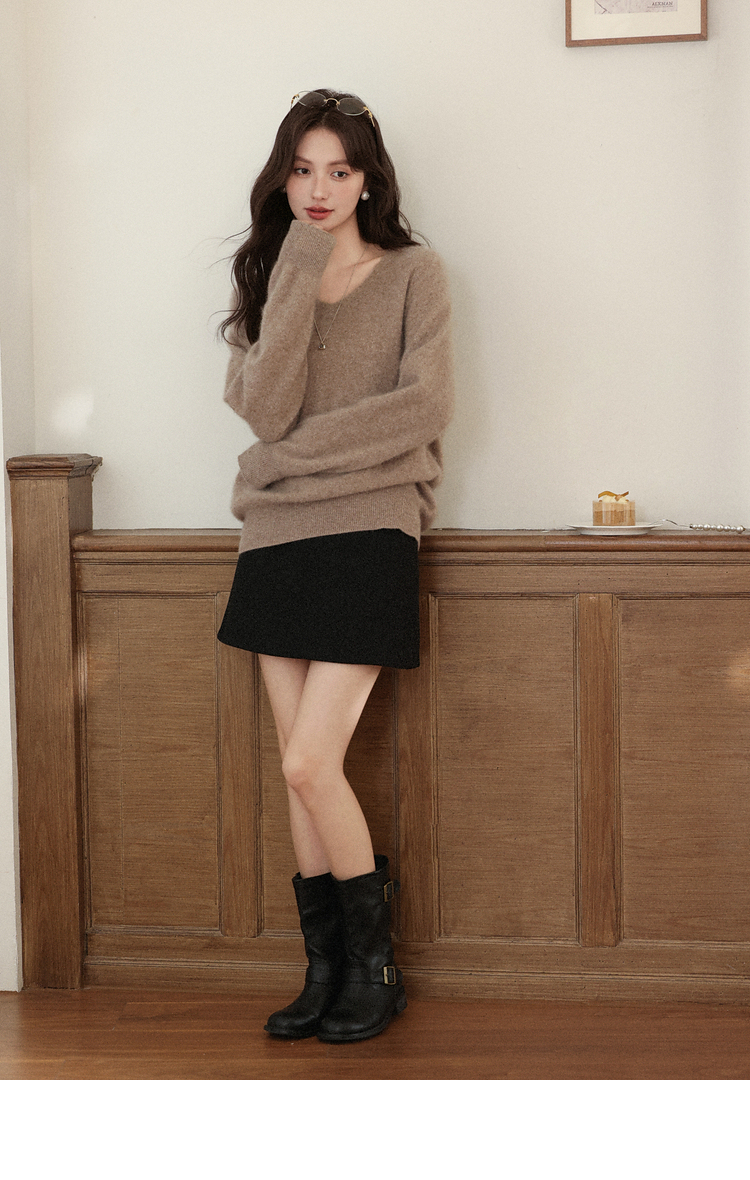 黑标 鹿向南「羊绒拉毛」羊毛无缝针织衫女秋冬咖色打底毛衣上衣