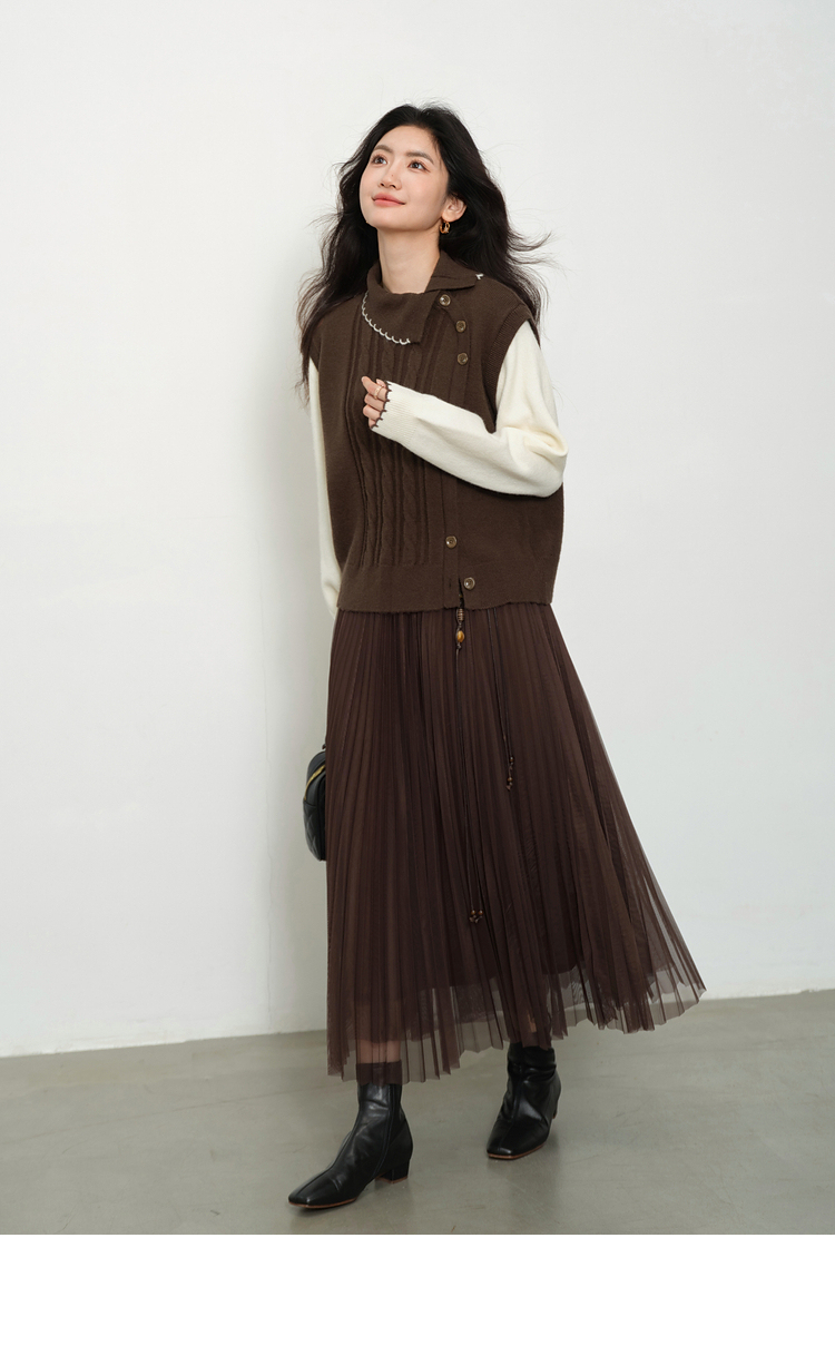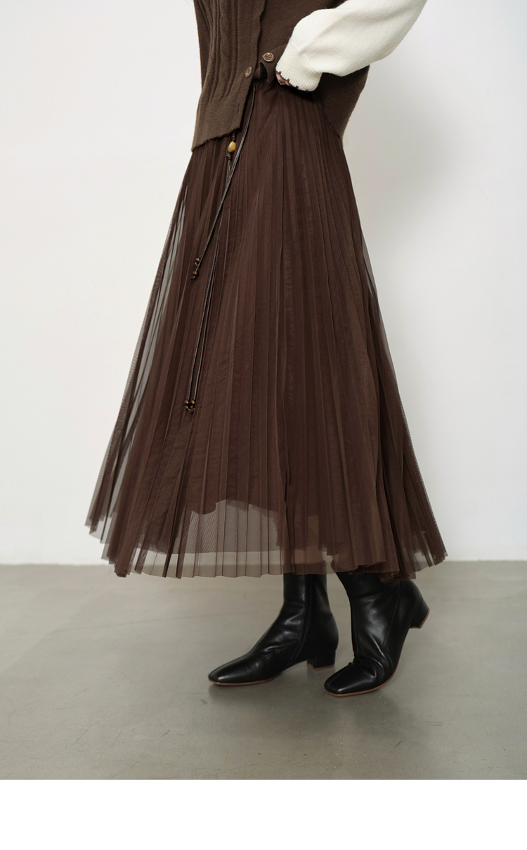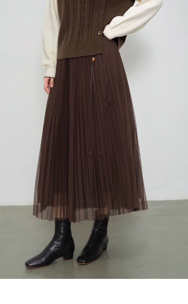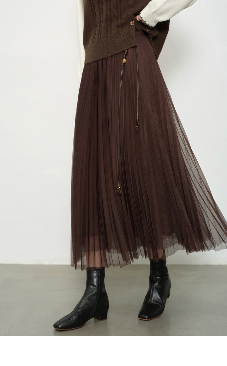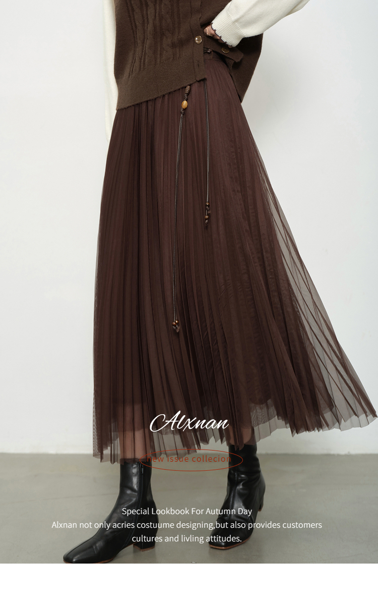 鹿向南「琥珀松林」咖色复古高腰半身裙女秋季新款小个子长款纱裙L58980