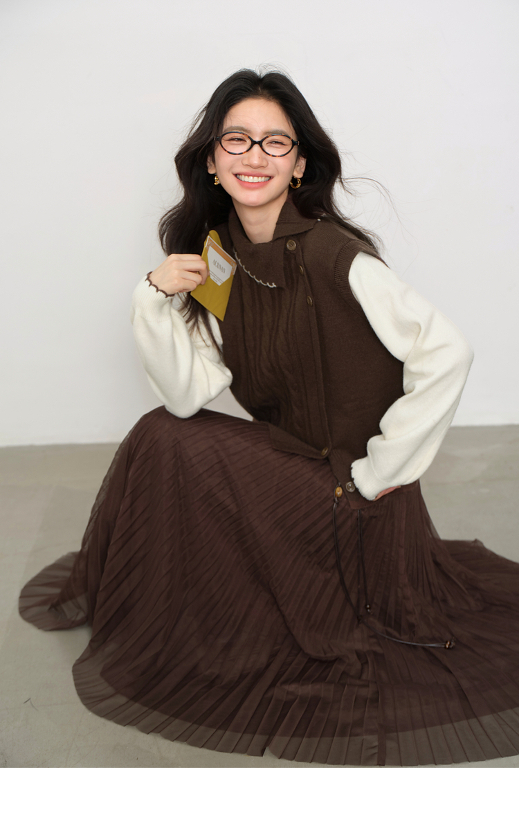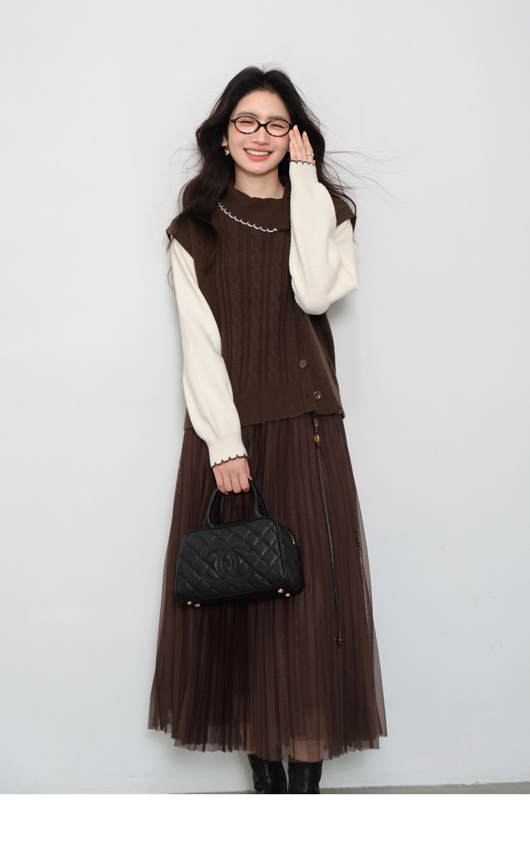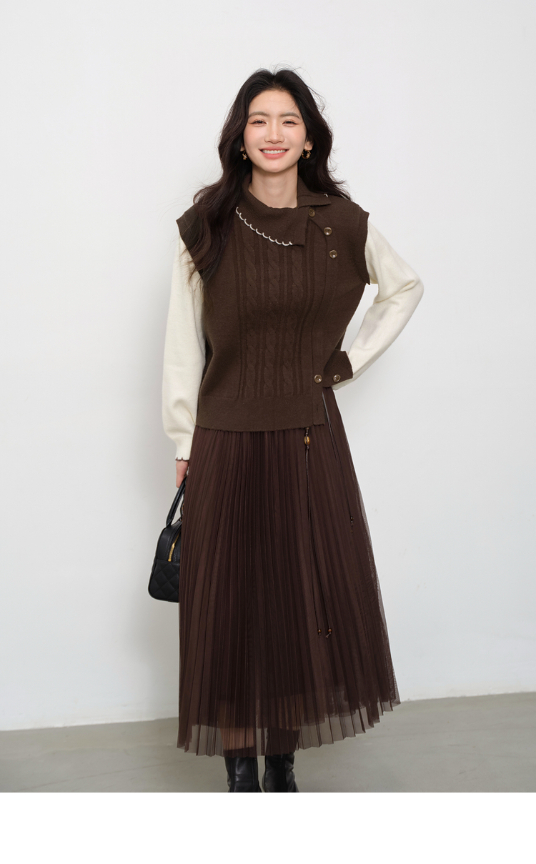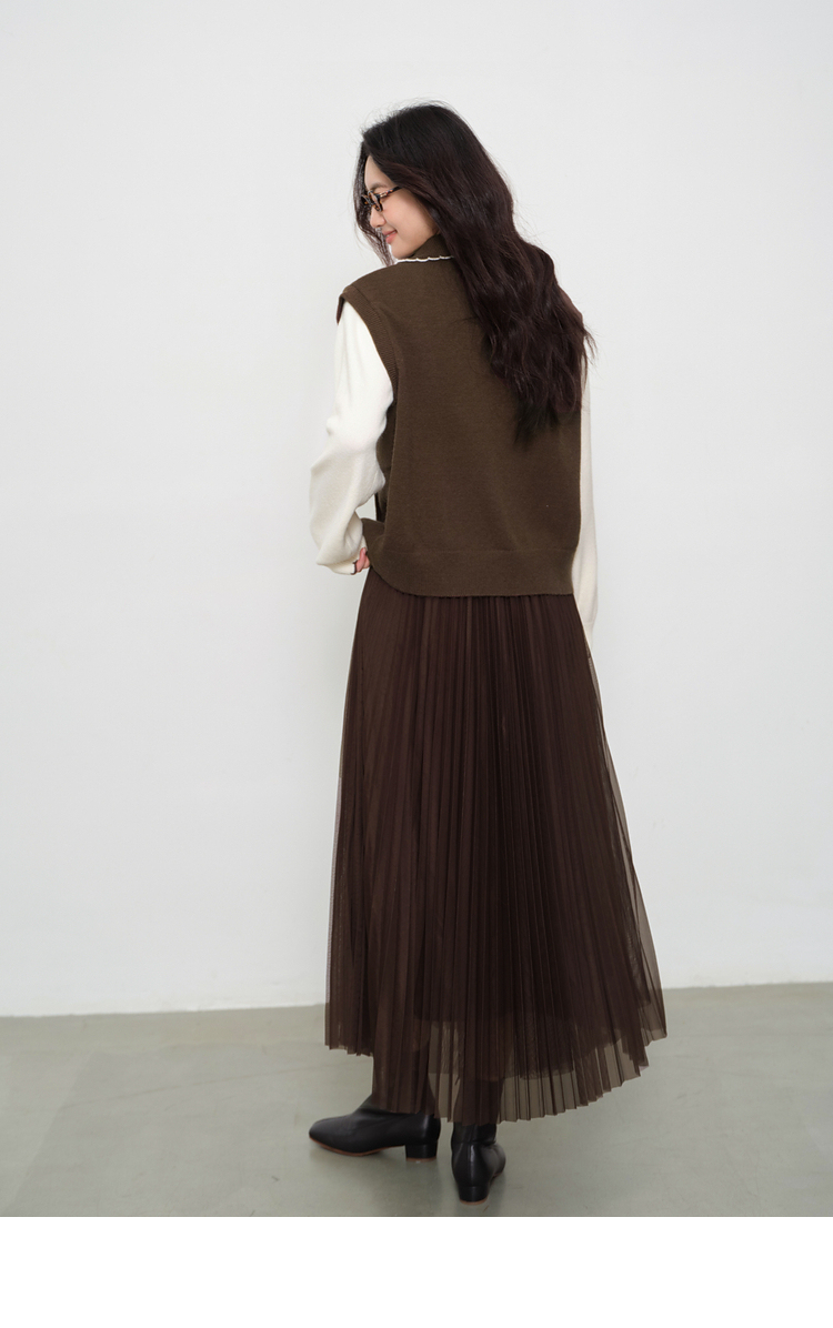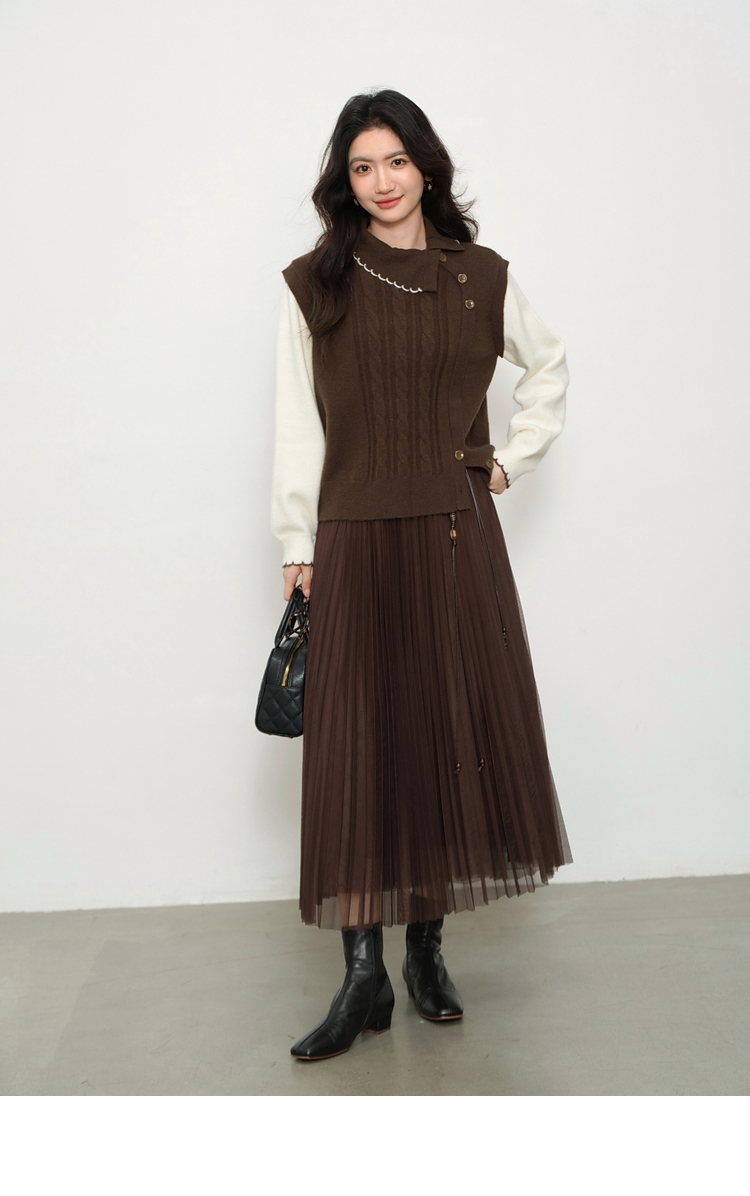 鹿向南「琥珀松林」咖色复古高腰半身裙女秋季新款小个子长款纱裙L58980