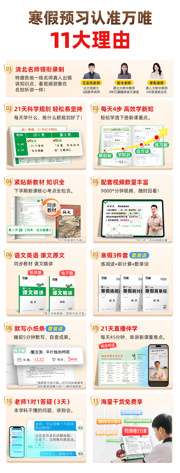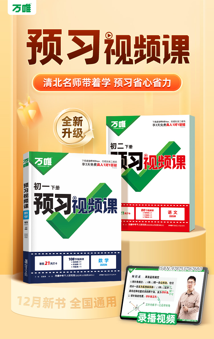 2026万唯初中预习视频课七八年级下册寒假预习册万维教育