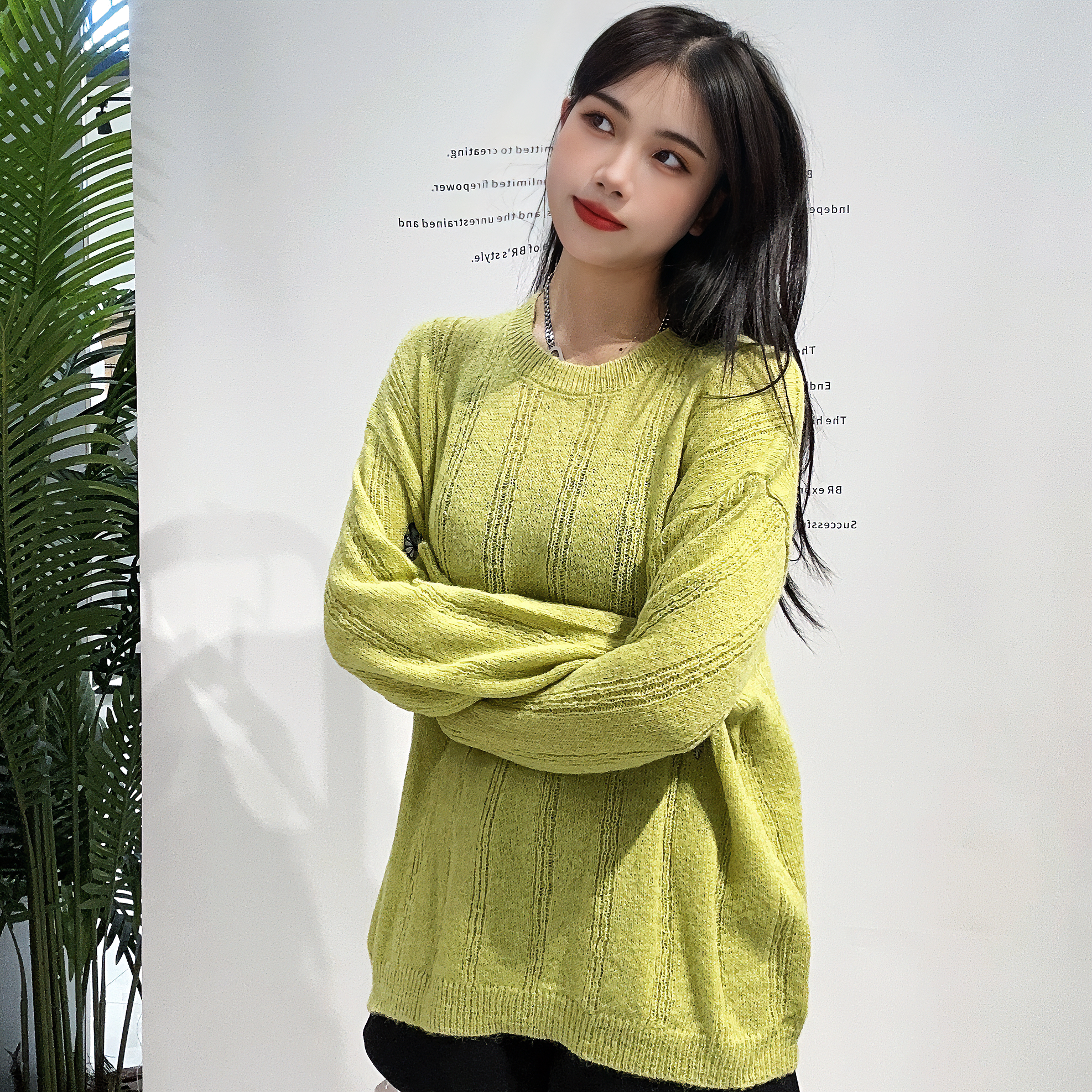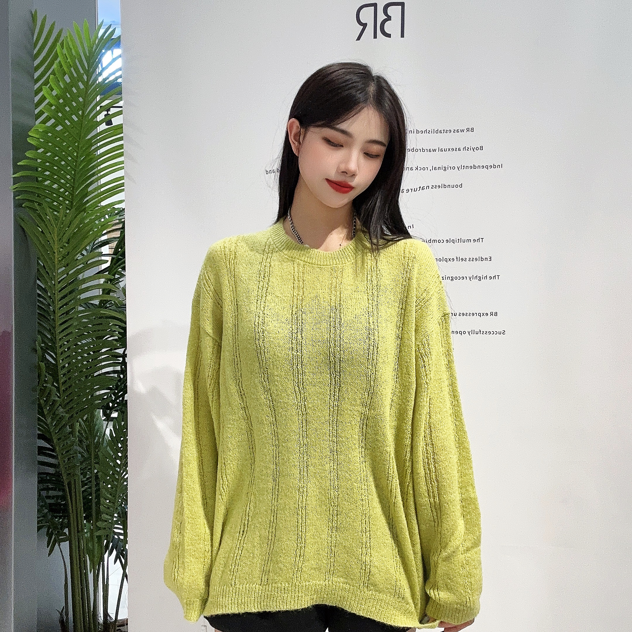 13WS圆领坑条镂空套头毛织衫41230(绿) 春季 403051032105