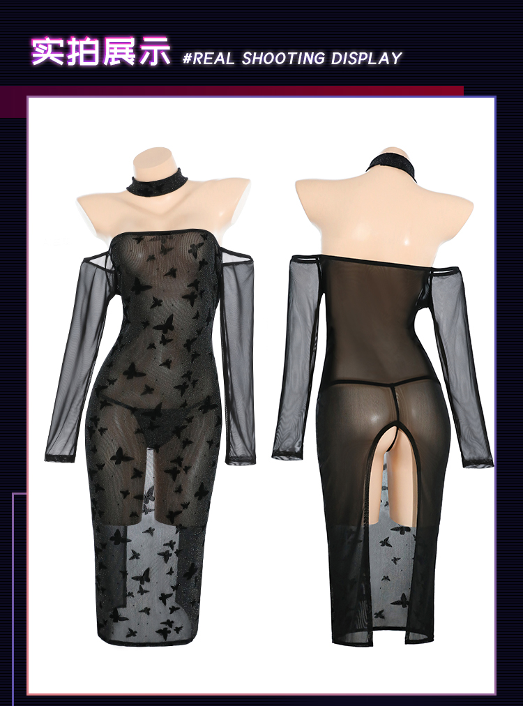 【情趣内衣】霏慕 夜欲蝶影透肤开衩连衣裙ZY128
