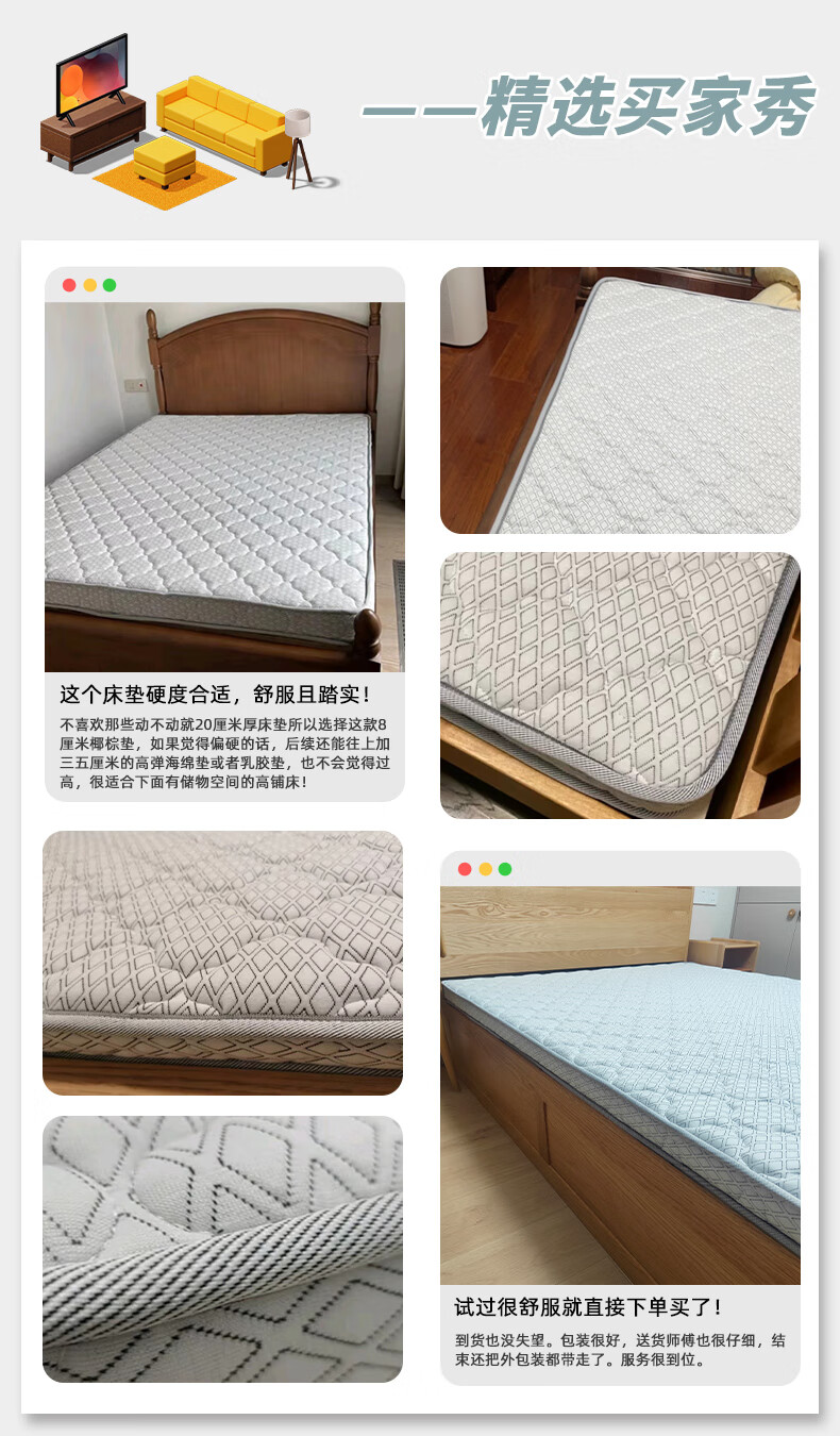 【家具】床垫 佩奇 多种规格可选(1491元以下需自行安装)