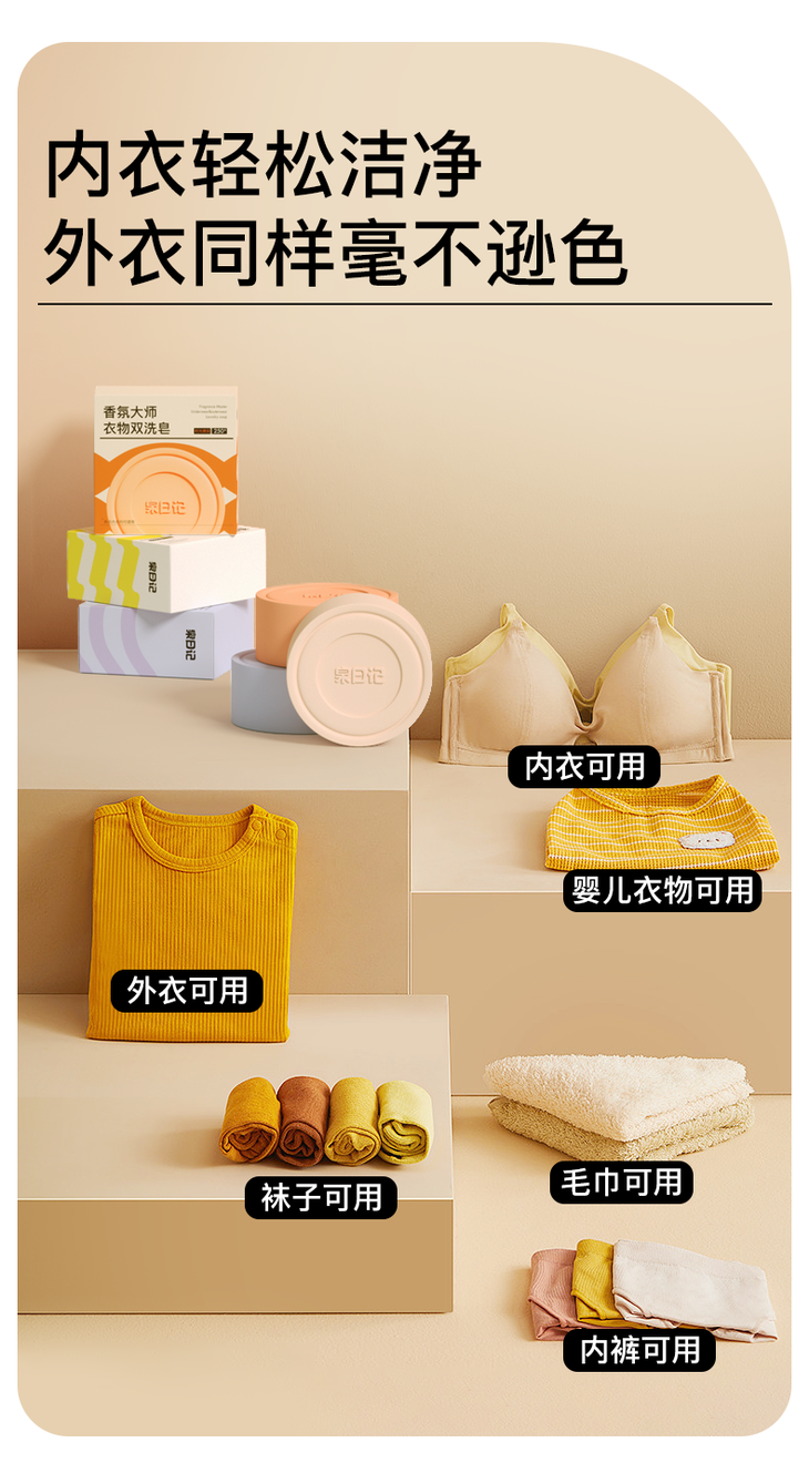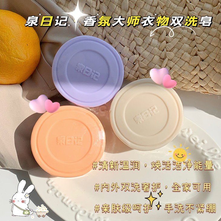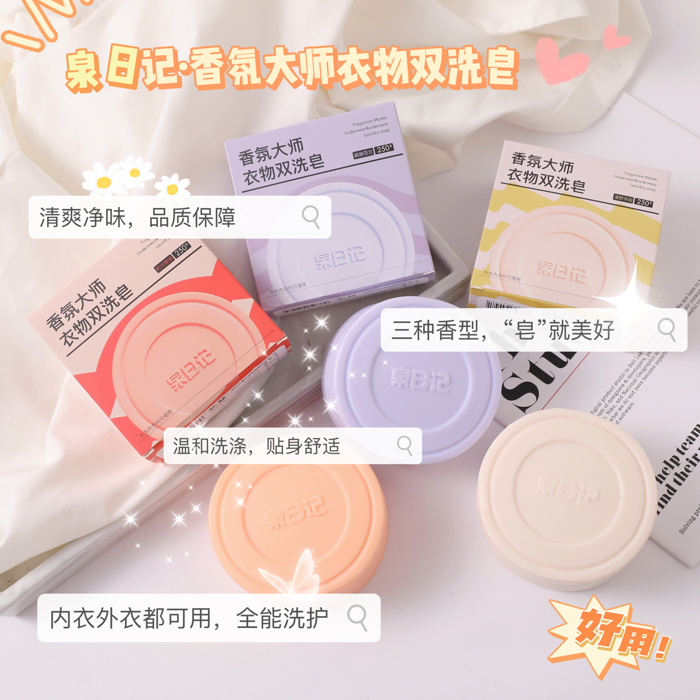 【泉日记 · 香氛大师衣物双洗皂】 ——内在衣物护理专家 为您的衣物提供专属绿色护理,“皂”就美好。 无论是胸衣、睡衣或外衣都能完美适配