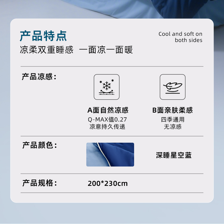 【双层凉柔结构】长轻 深睡控温被子(200cm×230cm)/条 双重凉柔睡感